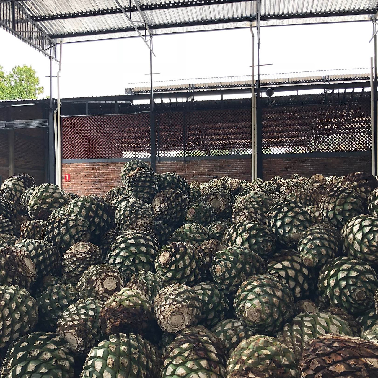 이것들은 전부 데낄라를 만드는데 쓰이는 마게이 들이다. 이와 같이 커다란 마게이는 적어도 10년은 넘게 기른 것들이라 한다. 산더미같이 쌓인 마게이를 뒤로 잠시 포토 타임을 가진다. 가이드가 데낄라 병을 비스듬히 세워 사람들이 그 병을 머리에 이고 있는 것처럼 나오는 사진을 찍어 준다. 이 사진은 투어가 끝나고 난 뒤 판매를 하는데, 한 장 당 100페소씩(약 6,000원) 받는다.