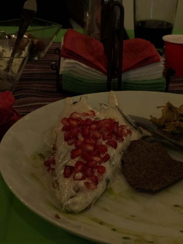 독립을 기념하는 이 음식의 이름은 'chile en nogad(칠레 앤 노가다)'이다. 멕시코에서 독립기념일에 먹는 특별한 음식이다. 초록색 고추의 속을 다진 고기 등으로 채우고, 그위에 호두로 만든 하얀색 소스를 뿌리고 마지막에 빨간 석류를 뿌려 장식한다. 초록, 하양, 빨강 모두 멕시코의 국기를 상징하는 색이다.
