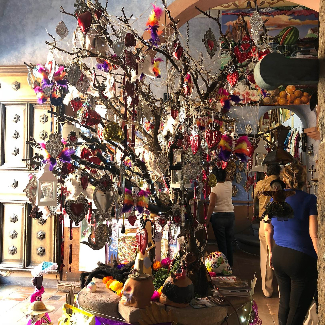 거리에는 곧 다가올 ‘죽은 자의 날’을 위한 준비로 알록달록한 해골 문양 종이들이 걸려있었다. 아기자기한 동네에 골목마다 작은 수공예품점들이 줄 비해 있다. 직접 문양을 그림 접시와 컵을 파는 가게, 스카프, 가방을 파는 곳, 마그넷부터 보석함까지 다양한 기념품을 구매할 수 있다.