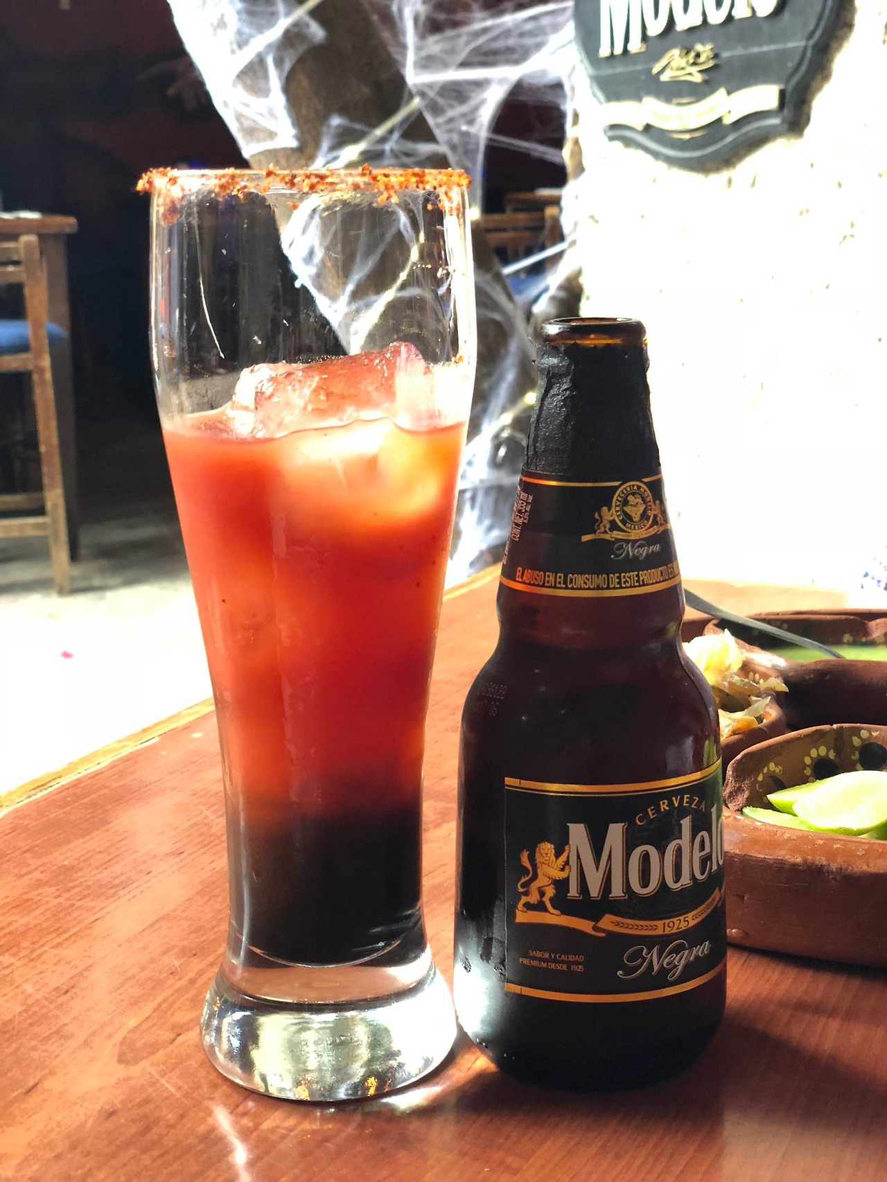 미첼라다는 맥주에 토마토소스를 섞은 음료이다. 컵 주위에 칠리 가루가 발라져 나온다. 처음 브렌다 언니에게 이것에 대한 설명을 들었을 때는 기겁했었다. 토마토 주스에 맥주를 섞는 다고요? 그리고 위에 칠리도 뿌려 먹어요?