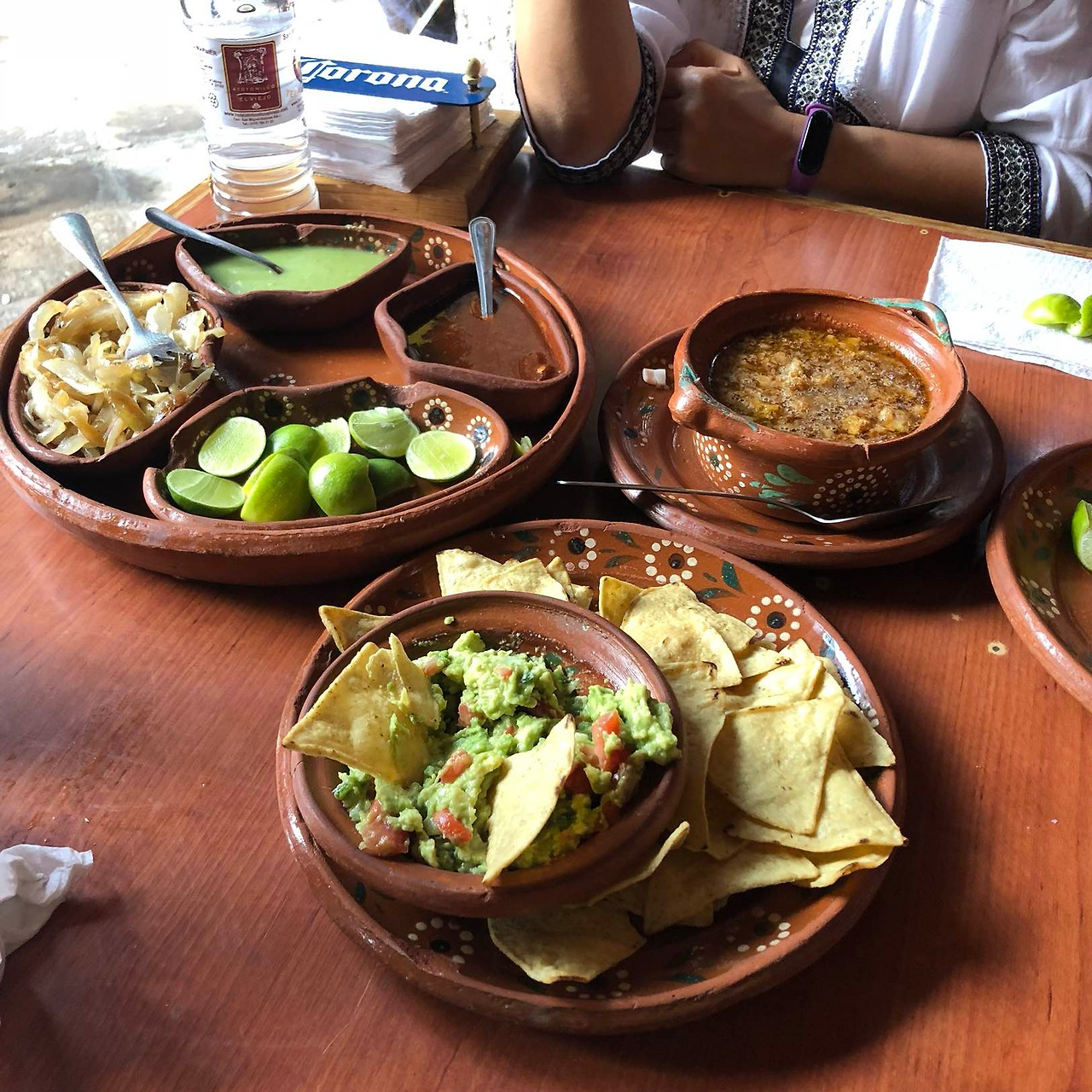 한참을 돌아다니니 다리가 아프고 배가 고파졌다. 따라서 우리는 지나가다 보이는 아무 식당이나 들어가 점심을 먹기로 했다. 그곳에서 몰까헤떼, 과카몰레, 그리고 미첼라다를 시켰다.