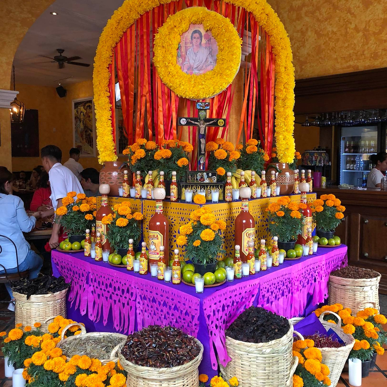 여행 도중에 간 한 식당에 altar가 핫소스로 장식되어 있다. 이 가게가 저 소스를 만든 원조 가게이기 때문이란다. 재밌는 것은 심지어 스타벅스에서도 커피가루와 커피잔으로 altar를 만들어 놓는다는 것이다. 스타벅스의 바로 옆 맥주 집에서는 맥주병으로 재단을 꾸미는 등, 다들 자신들의 가게에 맞춰 재단을 꾸민다.