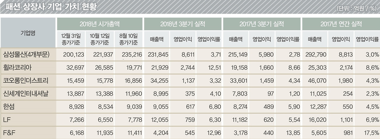 우리나라 오프라인 제조기반 패션 상장사 상위 (출처:패션비즈)
