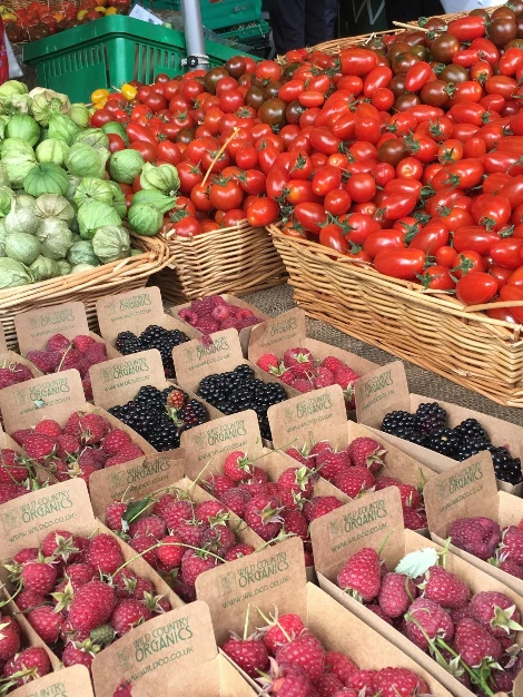 아름다운 빌딩들 사이로 걸어가다보니 빌딩들 바로 뒤에서 널찍한 도로를 막고 열리는 메릴본파머스마켓 Marylebone Farmers’ Market 에 도착했다. 이곳은 40여팀이 참여하는 런던 도심의 대표적인 마켓 중 하나로 고소득층이 많이 거주하는 런던 남부 도심 지역의 거리에서 매주 토요일에 열린다. 우리가 방문했을 때는 휴가철이기도 하고 시장이 끝나가는 시간이기도 했으나, LFM 시장들 중에서도 손꼽히게 큰 규모의 시장답게 농가들도 매대를 크게 차려놓고 다양한 채소들을 팔고 있었다.