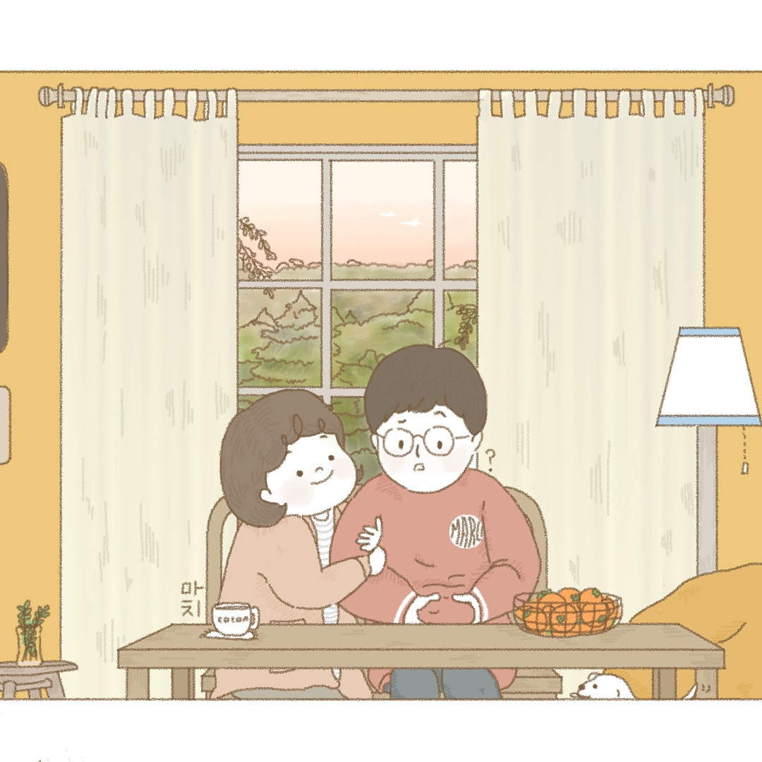 해질녘 노오란 벽 앞, 우리는 나무 테이블에 나란히 앉았어요. 테이블 아래에는 귤 냄새를 맡고 쪼르르 달려 온 우리 똥강아지가 킁킁, 꼬리를 흔들거에요. 겨우내 귤을 많이 먹어서 배가 나왔다며 투덜거리는 보오를 안아주고, 나는 코코아를 마실거에요. 해가 다 넘어갈 때까지 아무것도 않고 가만히 그 장면을 눈에 담을 수 있으면 좋겠어요.