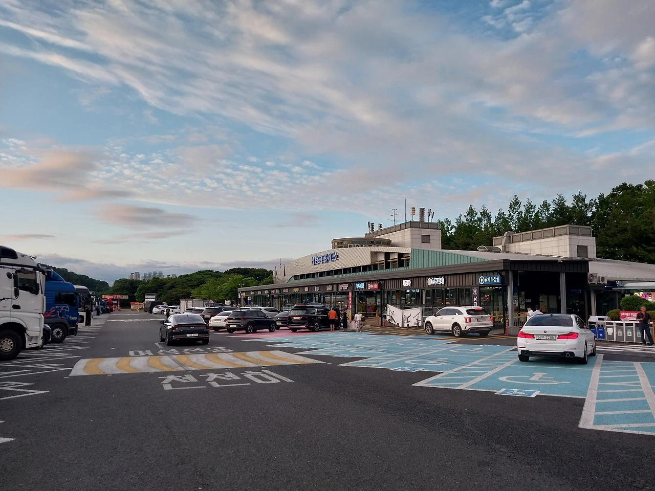 괴산 휴게소, 중부지방에서도 맑은 하늘이 보인다. 중간 지역에서 비가 내리지 않으면 서울에도 비가 내리지 않겠지?
