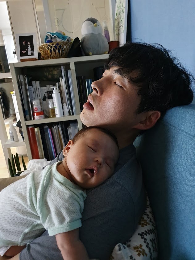 짠짠이 50일이 지나고 장인 장모께서 내려가시고 나니 이제 오롯이 우리 둘이서 육아를 하게 되었다. 이 시기의 육아란 것은 온종일 누워 있는 아기를 먹이고, 트림시키고, 기저귀 갈고, 달래고, 놀아주고, 재우고, 이런 일들이 계속 반복되는 시간이다. 다만, 언제 뭘 할지 예상이 안 되고 할 일들의 주기가 짧으니 정신없고 진이 빠지는 느낌. 트림해놓고는 토해서 옷 갈아입히고, 방금 기저귀 갈았는데 응가해서 씻기고, 왜 그런지 모르겠는데 울어서 달래고, 이런 식으로 할 일이 쉬지 않고 던져진다. 그나마 짠짠이는 100% 모유 수유를 해서 먹이는 일은 많지 않아 다행인 정도. 분유 수유를 하면 낮밤으로 젖병 씻는 일이 주로 남편 담당이라던데(...). 완모의 여왕, 최대주주님의 공덕이 참으로 크옵니다.