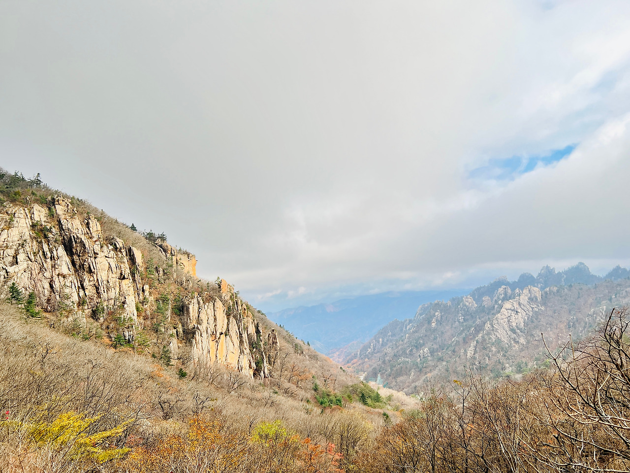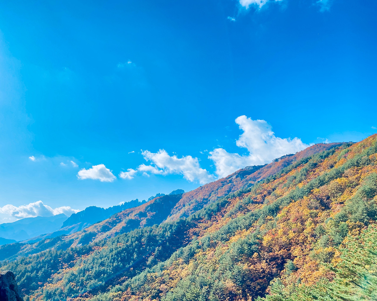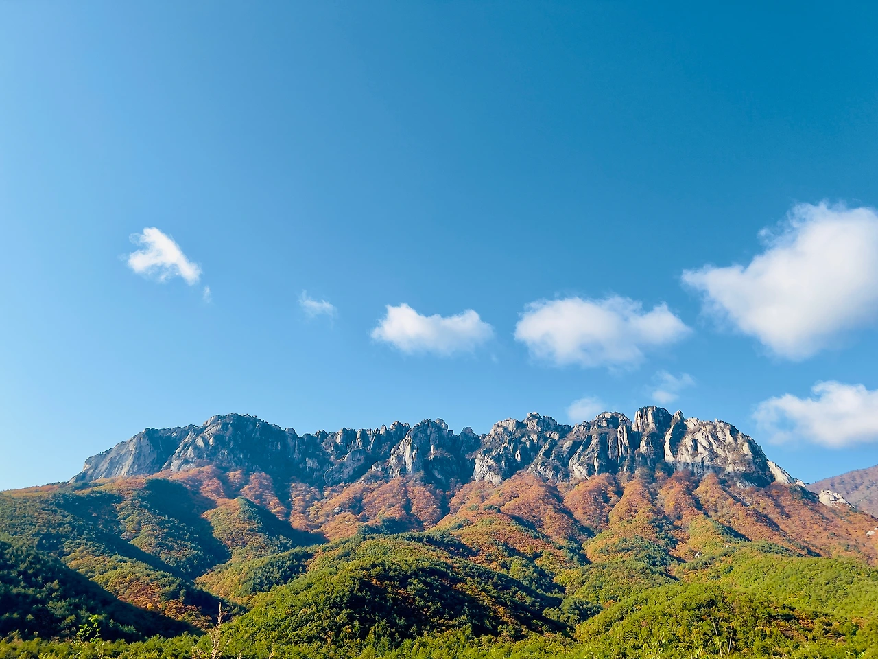 건너편에는 내 두 눈으로 보고 있다는 게 믿기 힘들 정도의 웅장함이 있었다. 장엄하고 눈부셨다. 울산바위 앞으로 화려한 가을의 색으로 수놓아진 산자락이 펼쳐져 있었다.