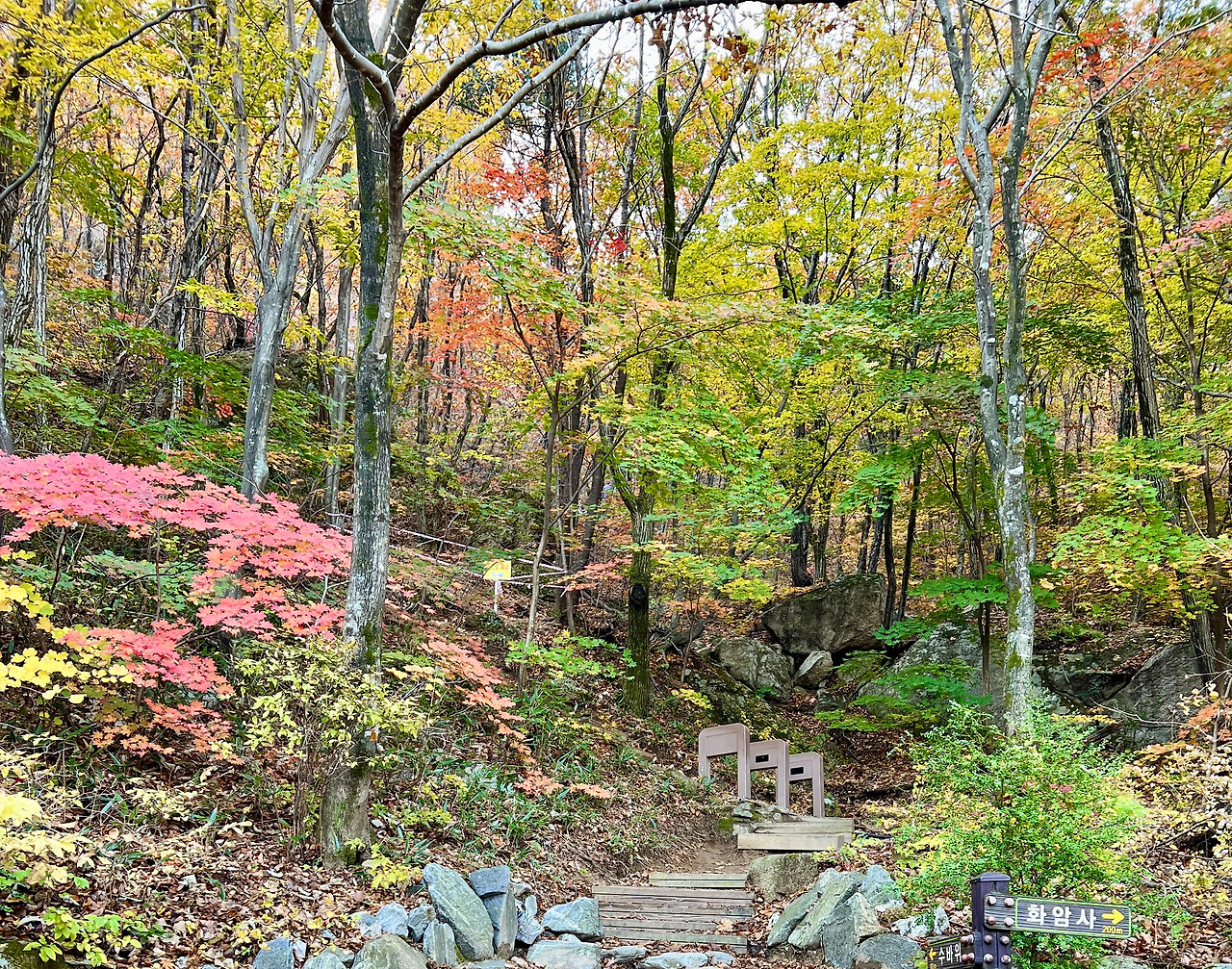 가을햇살이 사랑스러웠다. 며칠 전 설악산에 올해 첫눈이 내렸고 갑자기 기온이 뚝 떨어졌었다. 오기 전까지 날씨 걱정으로 애타던 우리의 과거가 애잔하게 느껴졌다. 날씨가 묘기를 부리는 듯 우리가 등산하는 오늘, 딱, 봄날같이 따사로웠다. 외투도 다 벗고 발걸음이 저절로 가벼워졌다.