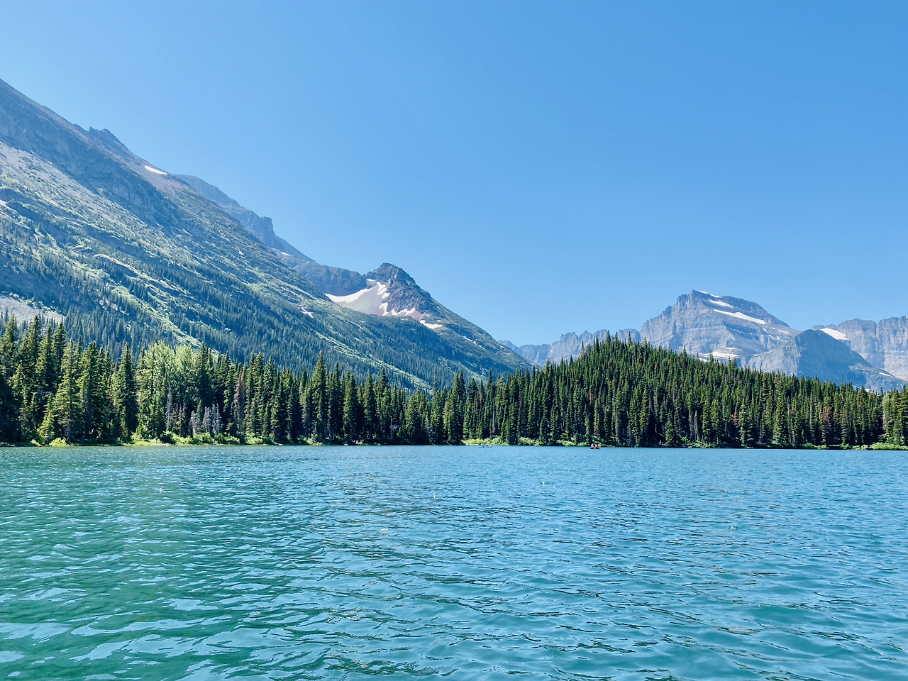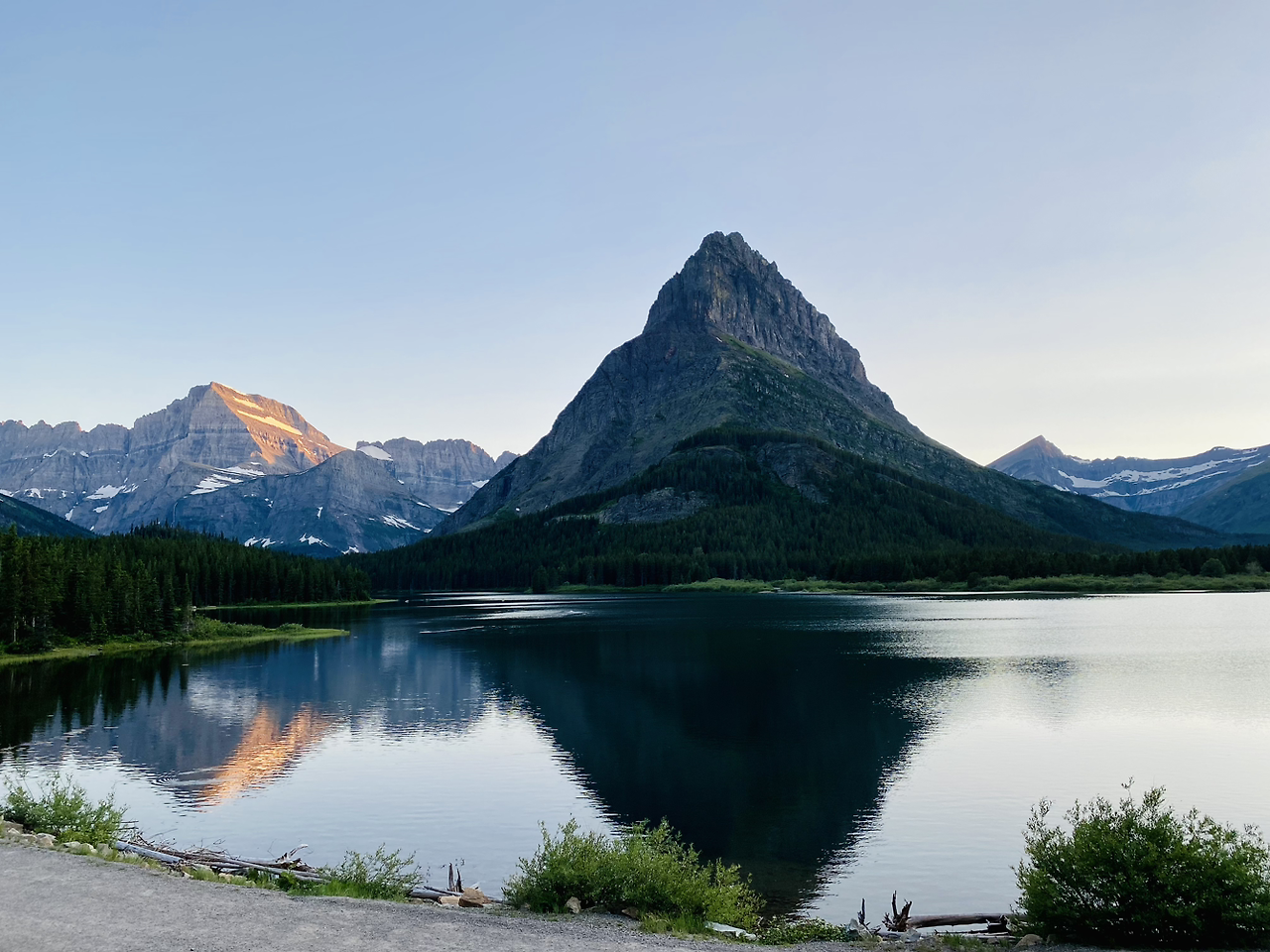 아침잠을 느긋하게 자고 일어나 나의 딸과 남편의 손을 잡고 어젯밤부터 우리를 부르는 곳으로 갔다. 호텔 앞 스위프트커런트 호수(Swiftcurrent Lake)로. 오늘 머무름의 원인이자 결과이자 모든 것이었다. 적막하면서 외롭지 않았고, 단순하면서 깊은 매력이 있었다.