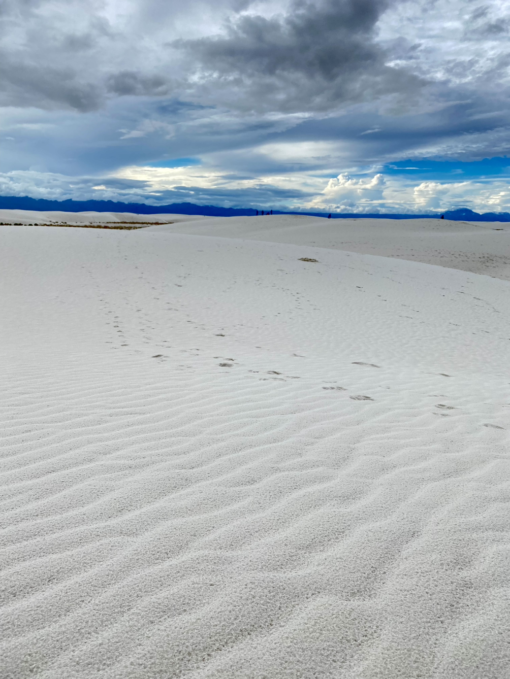 더운 여름을 잠재울 기세로 오전 내내 내리던 비가 막 그쳤다. 공기는 개운했다. 잘 자고 일어나 기지개를 켤 때의 내 몸처럼. 시곗바늘을 돌려 다시 아침이 찾아온 것 같은 상쾌함이 내 피부에 와닿았다. 비가 오는 동안 굳게 닫혔던 화이트 샌즈 국립공원 입구가 활짝 열렸다. 문이 열리기 전까지 두 시간 동안 우리의 애타게 출렁이던 마음은 어느새 증발해 버렸다. 축축한 조바심이 날아간 자리에는 설렘, 기대, 흥분이 뒤섞여 만들어진 결정체가 반짝거렸다.