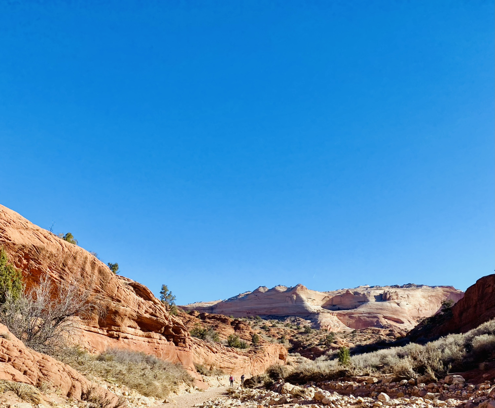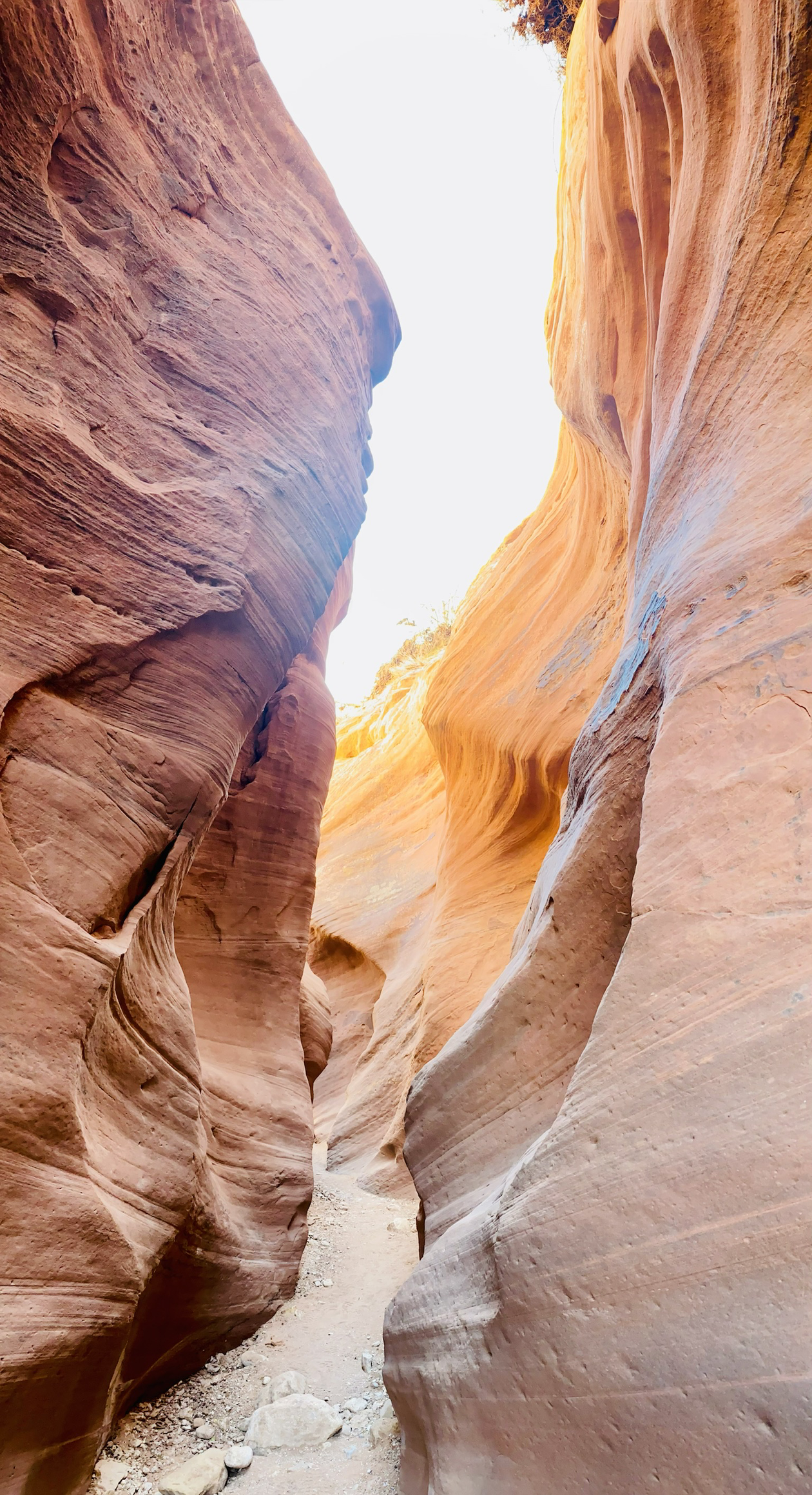 비가 올 땐 여길 들어올 수가 없다. 우리가 걷는 트레일이 물길이 되고 강이 되기 때문에. 특히 좁은 캐년 안에는 아주 적은 양의 빗물로도 위험하다고 한다. 물이 없는 강바닥을 걷는다는 게 신기했다. 살면서 보아왔던 강이라는 곳은 항상 물이 차 있었으니. 비가 오는 날과 오지 않는 날에 따라 강으로 변신했다가 다시 흙길이 되는 이곳이 신비롭게 느껴졌다. 그 오묘함으로, 걸을 때 일어나는 흙먼지도 참을 수 있게 되었다. 쉬엄쉬엄 걷다 보니 우리가 기대했던 캐년이 나타났다.
