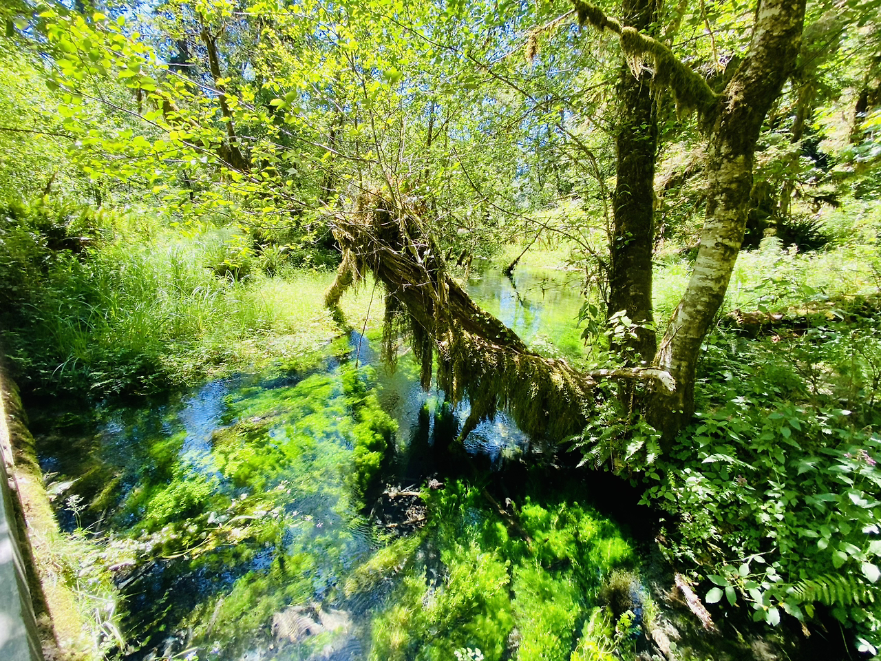 이곳 온대우림(moderate rainforest)은 시트카 가문비나무, 서부 솔송나무와 같은 침엽수와 큰 잎 단풍나무 같은 낙엽수 모두 무성하게 자라 커다란 초록 우산을 쓰고 있는 듯한 빽빽한 숲을 가지고 있었다. 다양한 종류의 이끼와 양치류가 살기 좋은 환경이었다. 트레일의 이름을 독차지할 정도로 이끼의 자태는 압도적이었다. 키 큰 나무들은 너도 나도 어깨 위에 이끼 스카프를 살포시 얹어 팔 전체에 우아하게 두르고 있었다.