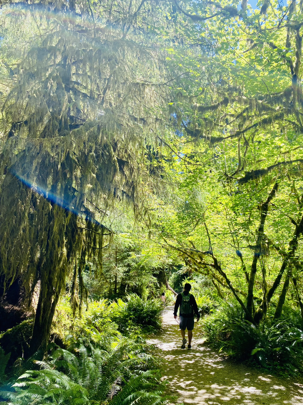 올림픽 국립공원에 있는 수많은 트레일 중 우리 가족은 호 우림(Hoh Rainforest)의 매혹적인 이끼의 전당(Hall of Mosses Trail) 길 위에 서 있었다. 비 오는 날 흙 위로 나온 지렁이처럼 우리는 기쁘지만 느릿느릿 움직였다. 토끼처럼 뛰어갈 수가 없었다. 몇 걸음 걷다가 멈춰 서고 또 조금 가다가 돌아보게 되었다.