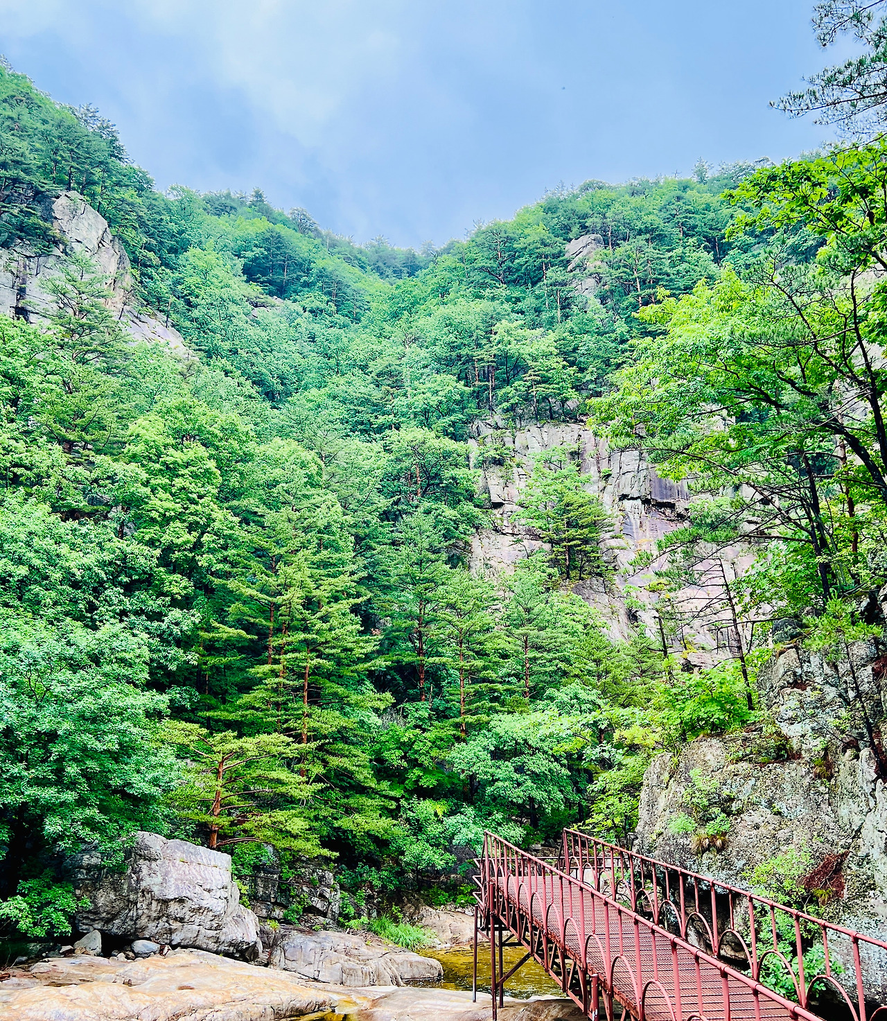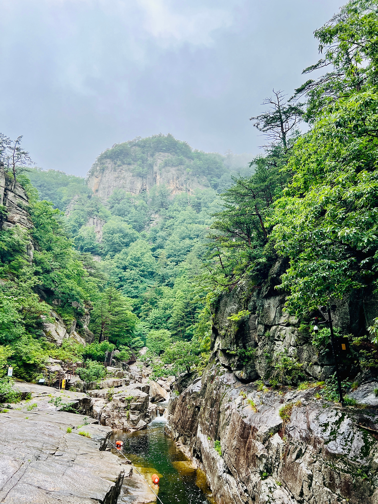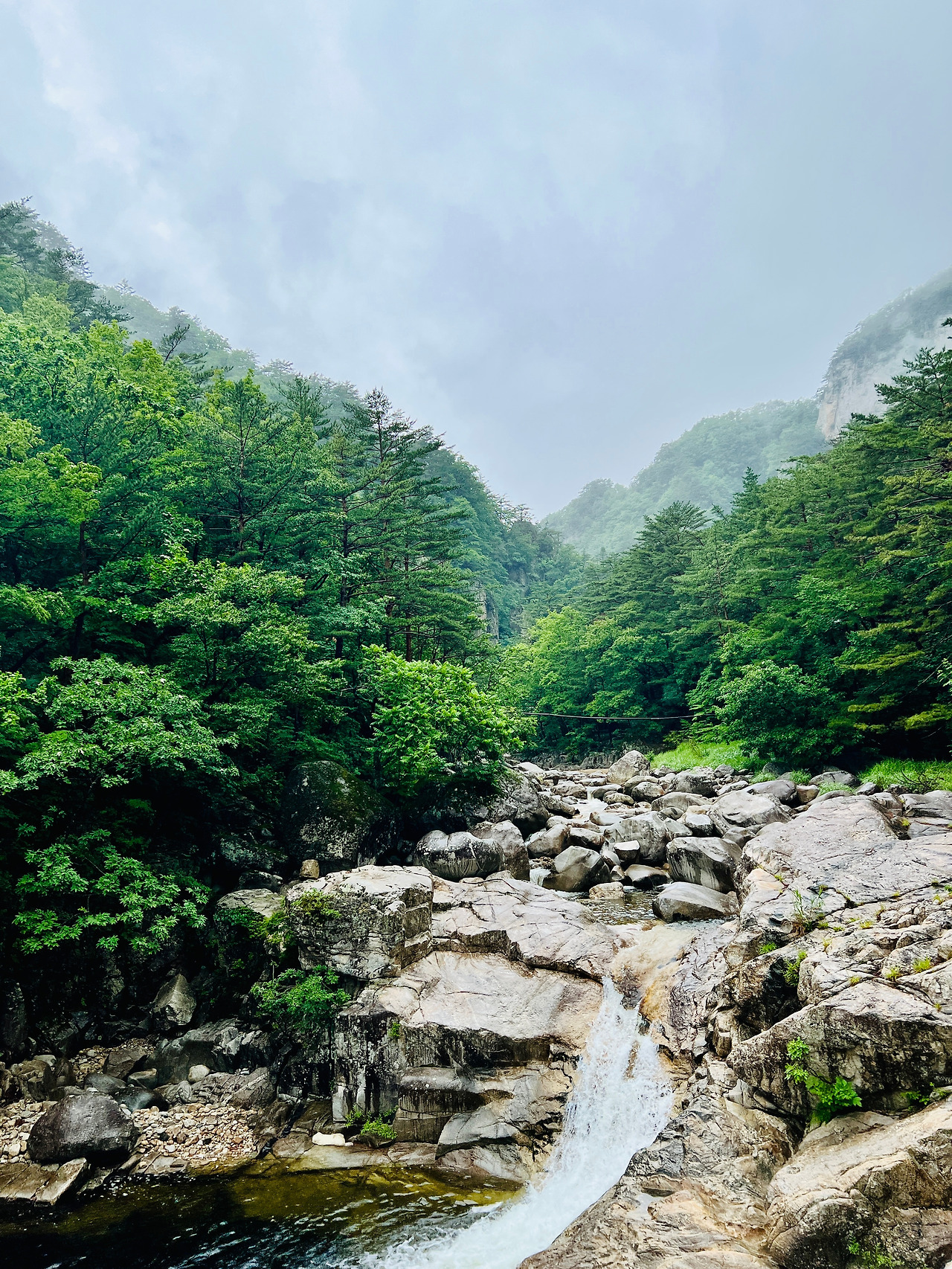 보슬비가 오다 가다를 반복했다. 온몸이 흠뻑 젖는 비가 아니라서 괜찮았다. 어느 순간부터 비가 오는지 안 오는지 상관없어졌다. 비냄새가 상쾌했다. 콸콸콸 내려오는 계곡소리가 웅장했다. 물기를 머금은 소금강은 에어컨이 머쓱해할 정도로 시원한 공기를 잔뜩 불어내고 있었다. 이번달 내내 작렬하던 무더위가 내 머릿속에서 까맣게 잊혔다.