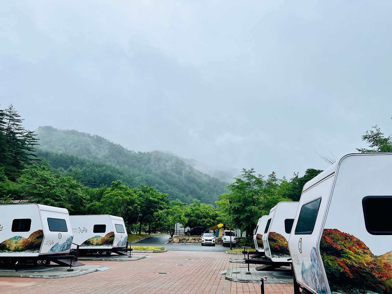 이틀 째 여름비였다. 소금강산 야영장의 아침은 불끈 떠오르는 태양 대신, 몽글몽글 피어오르는 안개였다. 카라반 앞 데크에 앉아, 고요히 지켜보았다. 하늘을 가득 채운 회색빛 구름이 빗줄기를 주룩주룩 내리는 모습을. 끊임없는 빗방울이 세상만물에 촉촉이 스며드는 모습을. 짙은 녹음을 향해 내달리는 6월의 산을 연기 같은 안개가 보드랍게 쓰다듬고 지나가는 모습을.