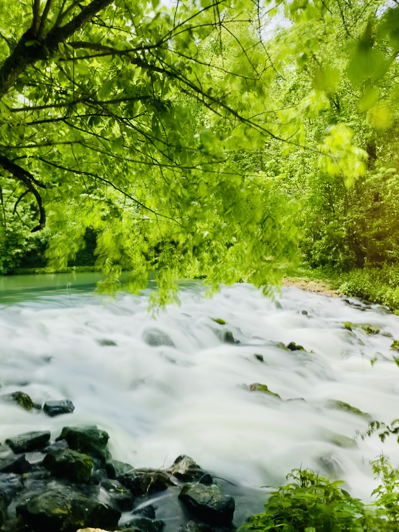 처음 보는 색이었다. 연두색과 초록색, 청록색과 에메랄드색이 오묘하게 섞여있었다. 분명 색이 있음에도 투명했다. 새들의 노랫소리는 귀를 간지럽히고 나뭇잎들은 눈이 시리도록 싱그러웠다. 샘은 우렁찬 소리와 함께 소용돌이치며 땅속에서 솟아 나왔고, 빠른 속도로 퍼져서 흘러갔다.