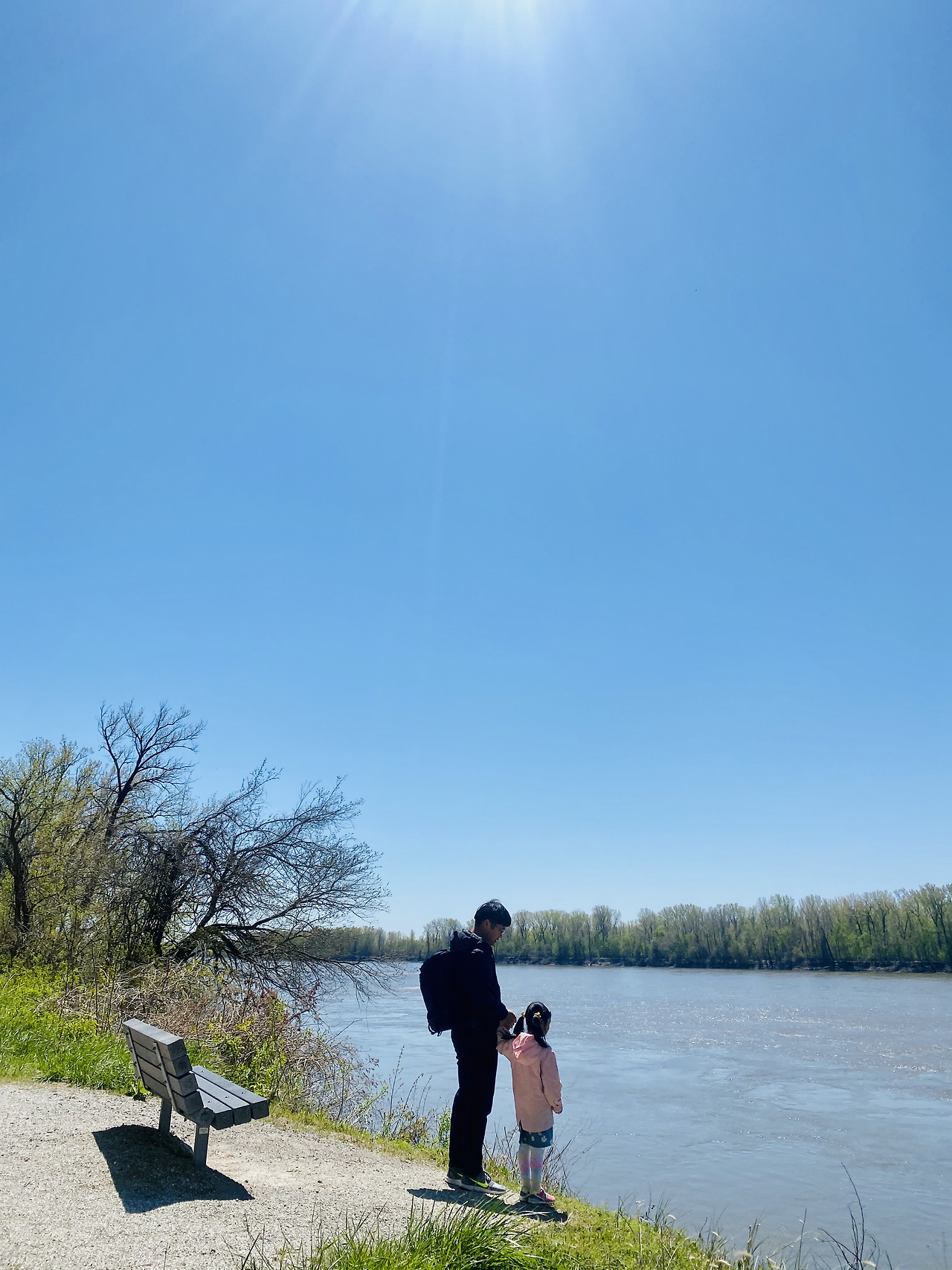 잘 모르겠다. 남편과 내가 감동한 이유가, 마주친 사람들의 순수하게 눈부신 미소 때문인지, 우리에게서 처음 발견한 이런 종류의 말랑한 다정함 때문인지. 아니면 타인을 향해 미소를 주고받은 모두의 상냥한 마음 때문인지. 정직한 봄 햇살이 마냥 눈부셔서인지. 미주리강이 엄마의 사랑처럼 한없이 넓고 깊어서인지. 구불거리는 내 마음을 다림질로 반듯하게 펴듯 트레일이 정갈하게 펼쳐져있어서인지. 새로운 세상으로 깨쳐 나온, 강변에 막 돋아난 연둣빛 새싹의 애씀이 오늘의 나 같아서인지.