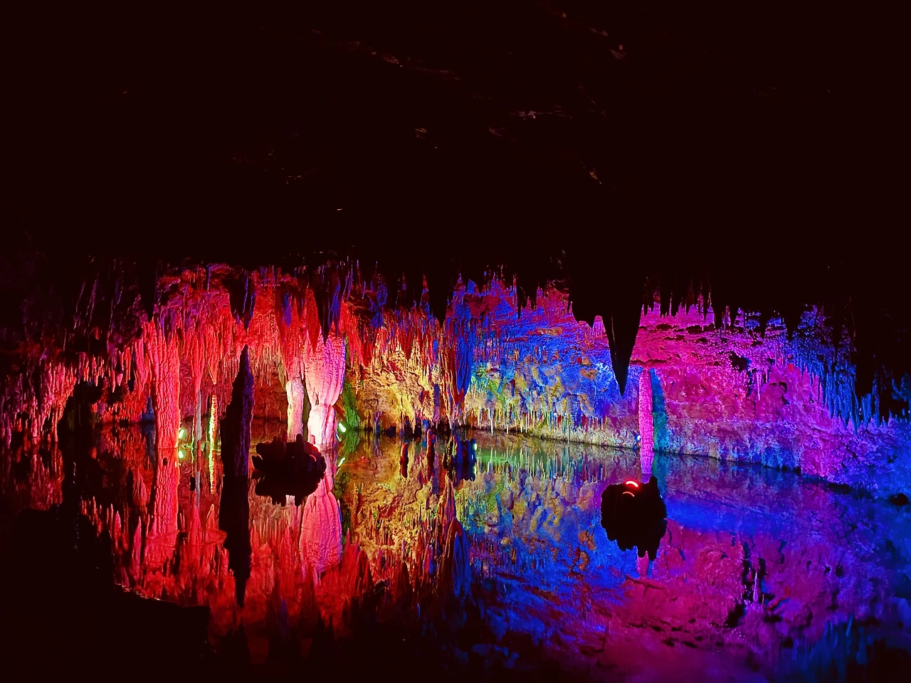 반은 진짜 동굴 벽이었고, 나머지 반은 물에 비친 모습이었다. 맑고 깨끗한 물은 동굴의 티끌 하나까지도 섬세하게 비쳐줄 작정을 한 모양이었다. 물 그림자는 초고화질 티브이 같이 선명했다. 마트에 전시된 티브이 앞에서 너무나 선명한 실사 영상을 보며 빨려 들어갔던 때가 생각났다.