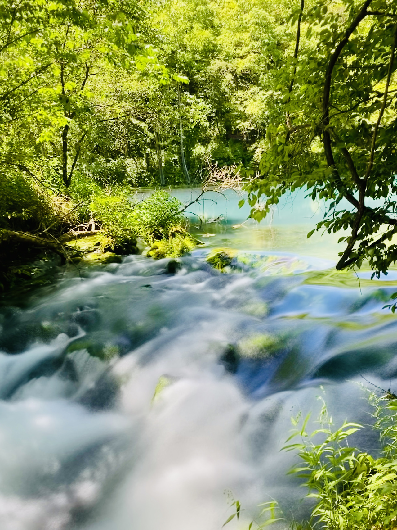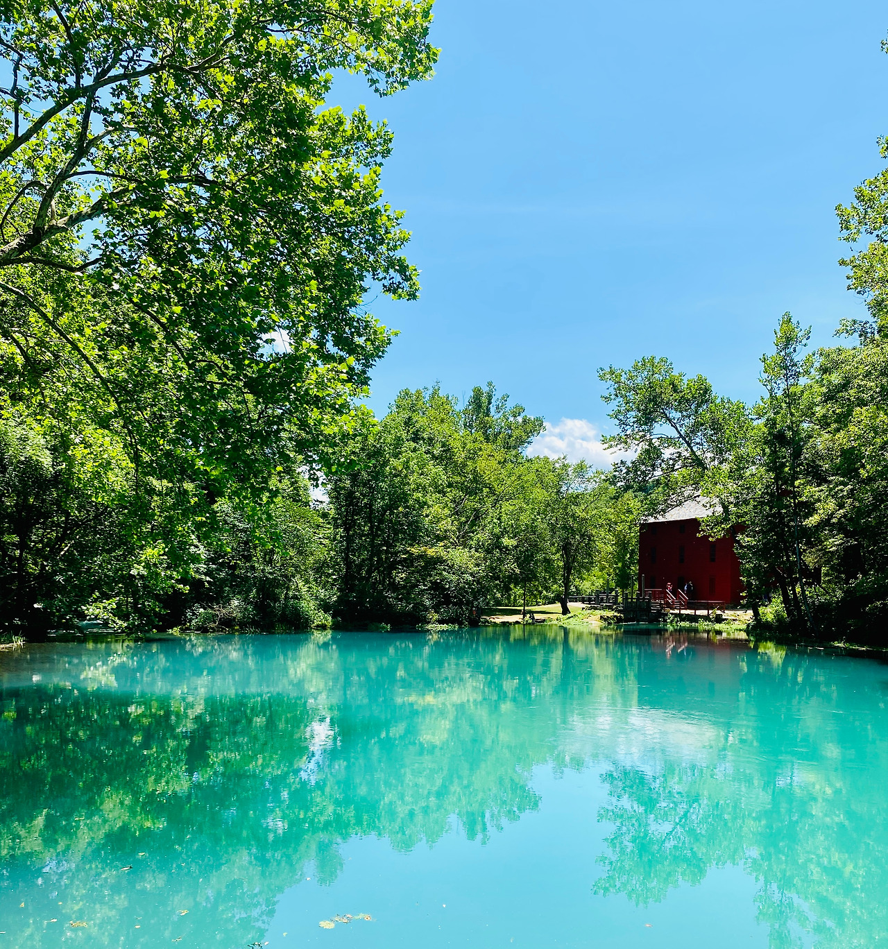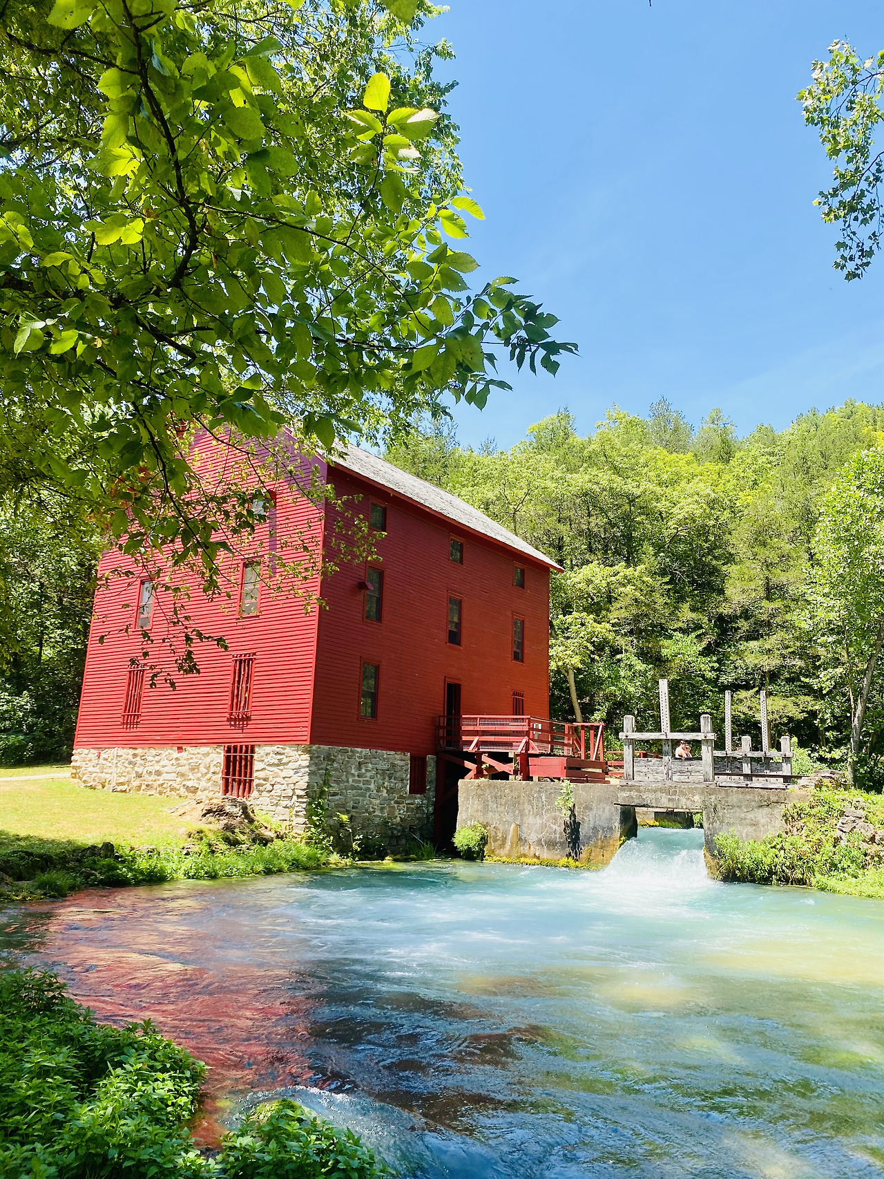 소리가 점점 가까워졌다. 앨리 샘물(Alley Spring)이 폭포수처럼 흐르고 있었다. 청아한 투명함이 쏟아져 나왔다. 얕은 물가는 바닥에 작은 자갈 하나까지 고스란히 다 내보이고, 샘물이 깊어질수록 영롱한 청록빛으로 반짝거렸다. 그 옆으로 보이는, 나무로 지은 3층짜리 앨리 제분소(Alley Mill)는 모두부처럼 반듯했고 빈틈없는 빨간색이 잘 어울렸다. 벽면으로 줄을 지어 가지런한 창문에는 연두색 나뭇잎이 비쳐 들었다.