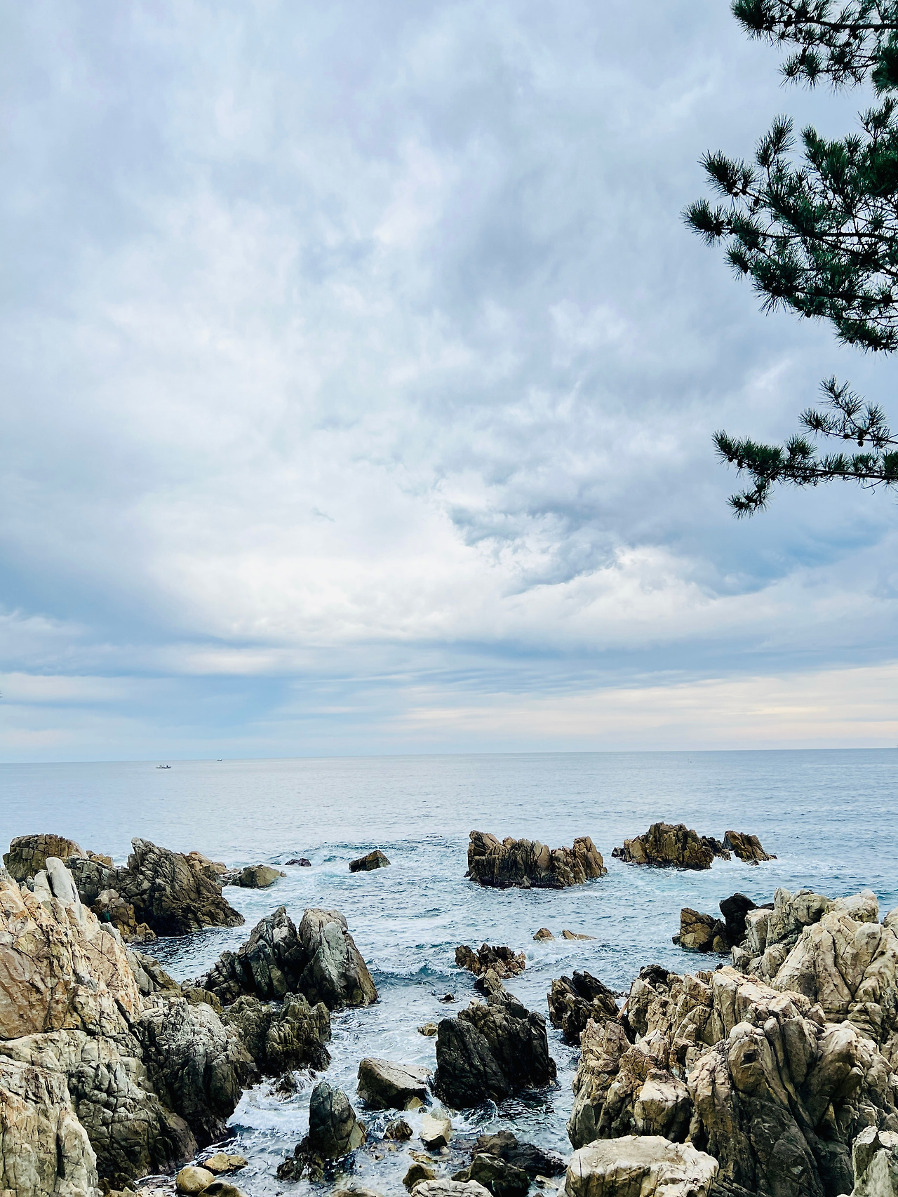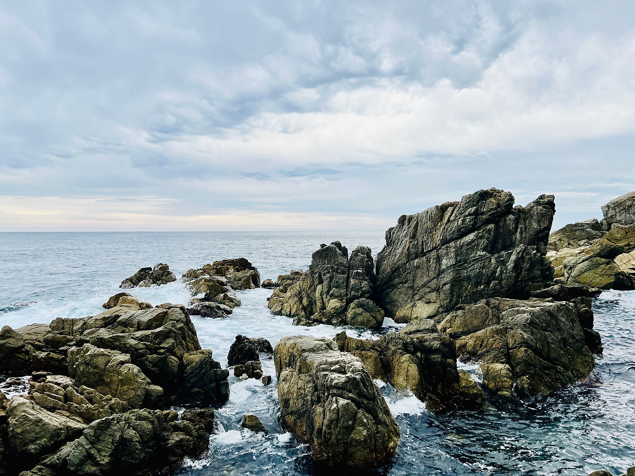 해바라기처럼, 바위들은 하늘과 맞닿은 바다를 보고 있었다. 매일같이 새롭게 뜨고 떠나가는 해를 볼 것이었다. 눈과 비와 바람을 맞으며 오롯이 서있을 것이었다. 수행자의 경건함이 느껴지는 이곳에서 고독의 심연으로 빠져들고 싶어졌다. 파란 파도는 바위 사이사이를 자유롭게 넘나들고, 하얀 거품은 바위를 만나는 순간 안개처럼 사라져 갔다.