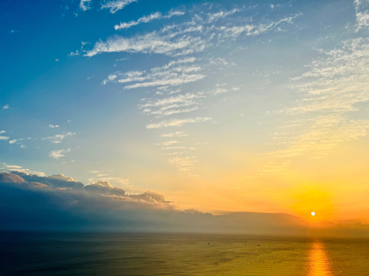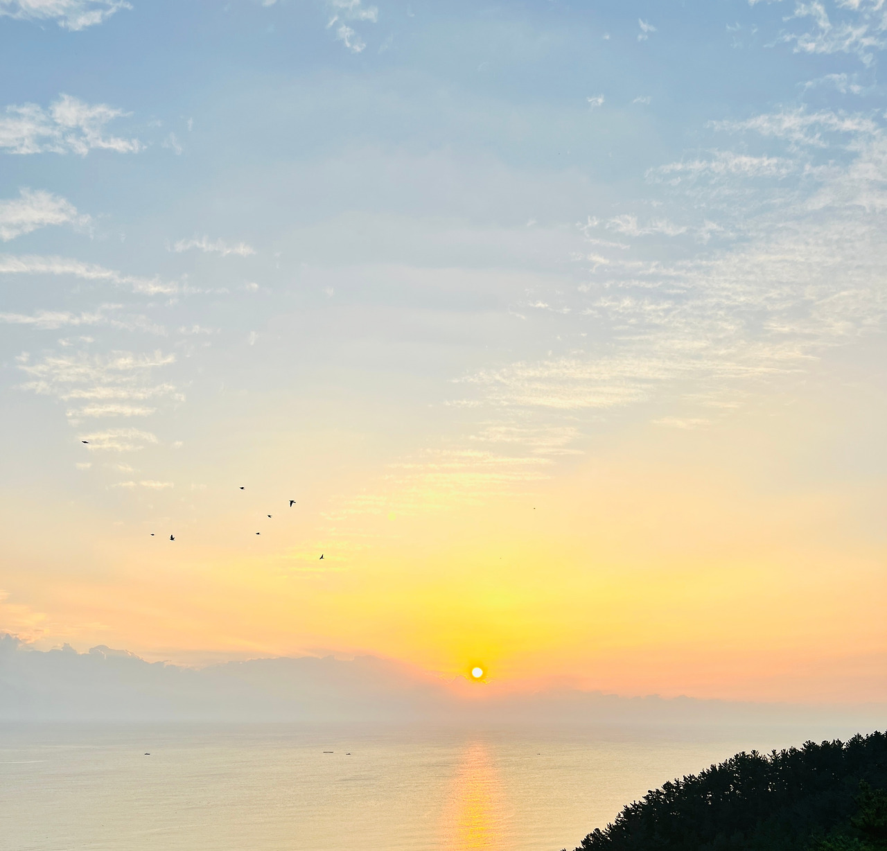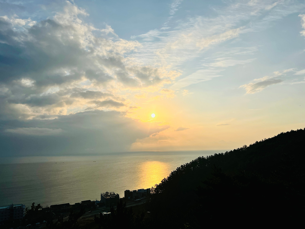 새벽 6시 45분, 눈을 떠보니 거짓말처럼 하늘이 개어 있었다. 수평선 너머 하얀 구름 장막을 두른 바다가 보였다. 새파란 하늘에 붉은 태양이 서서히 온기를 퍼트리고, 투명한 공기는 상쾌하게 내 얼굴을 간지럽혔다.