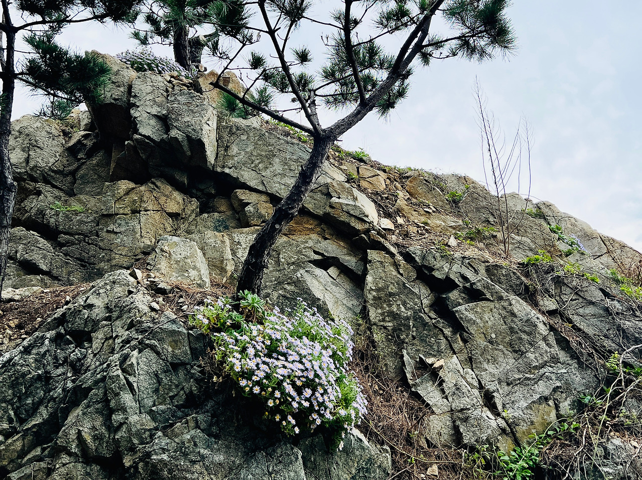 바위들이 눈에 들어왔다. 밝은 색과 어두운 색이 섞여 있었다. 약 2억 년 전 깊은 지하에서 마그마가 식어 만들어진 화강섬록암이라고 했다. 얼마나 오랜 시간을 지하에 있다가 수면 위로 올라왔는지, 그 뒤로 또 얼마나 긴 시간이 지났는지 알 수 없었다. 바위들의 둥글고 뾰족한 다양한 형태가, 표면에 깊게 파인 수많은 주름들이, 그저 내가 셀 수 없는 숫자의 시간을 보내고 있음을 짐작하게 했다.