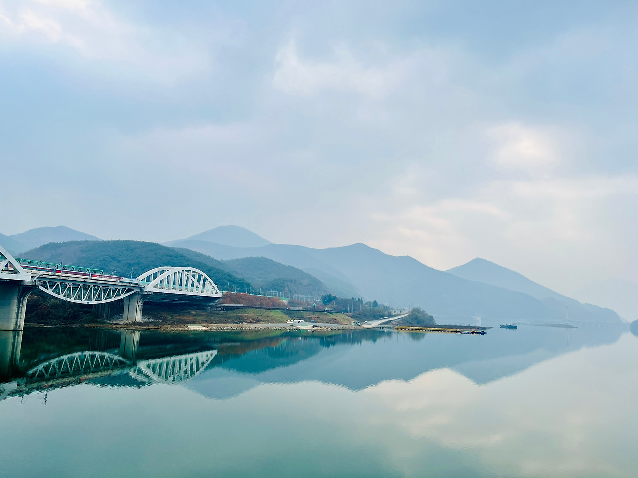 초록빛 강물은 시간이 멈춰 있었다. 모든 것이 빨라야 하는 현대 사회에 이곳은 속해있지 않았다. 휙휙 지나가는 짧은 영상의 유혹이 넘쳐나는 세상에서 이곳은, 느리게 긴 장면 하나로 나를 끌어당겼다. 오묘한 비취색의 남한강은 쓸쓸한 하늘을 고스란히 담아 애달픈 빛이 났다.