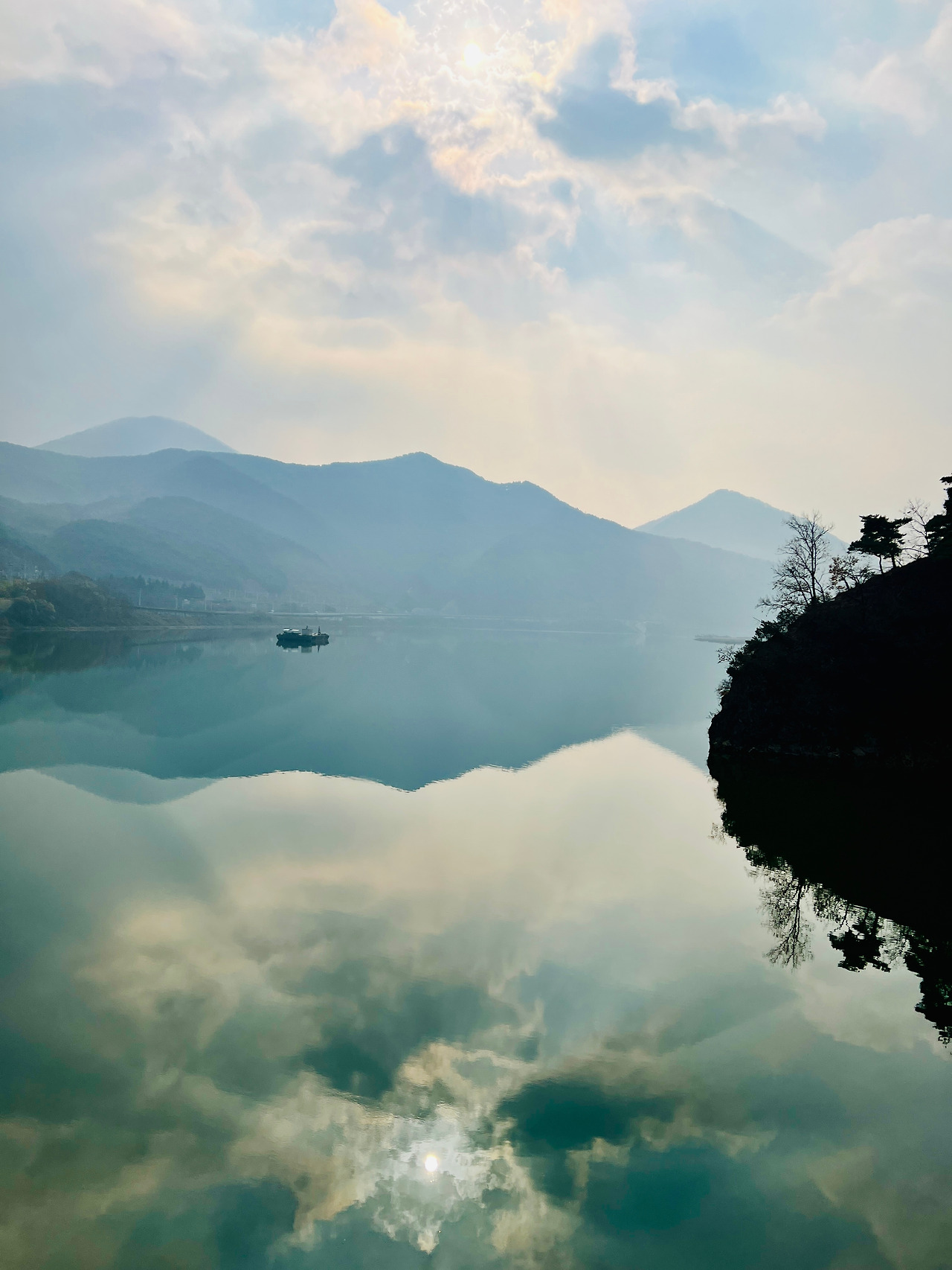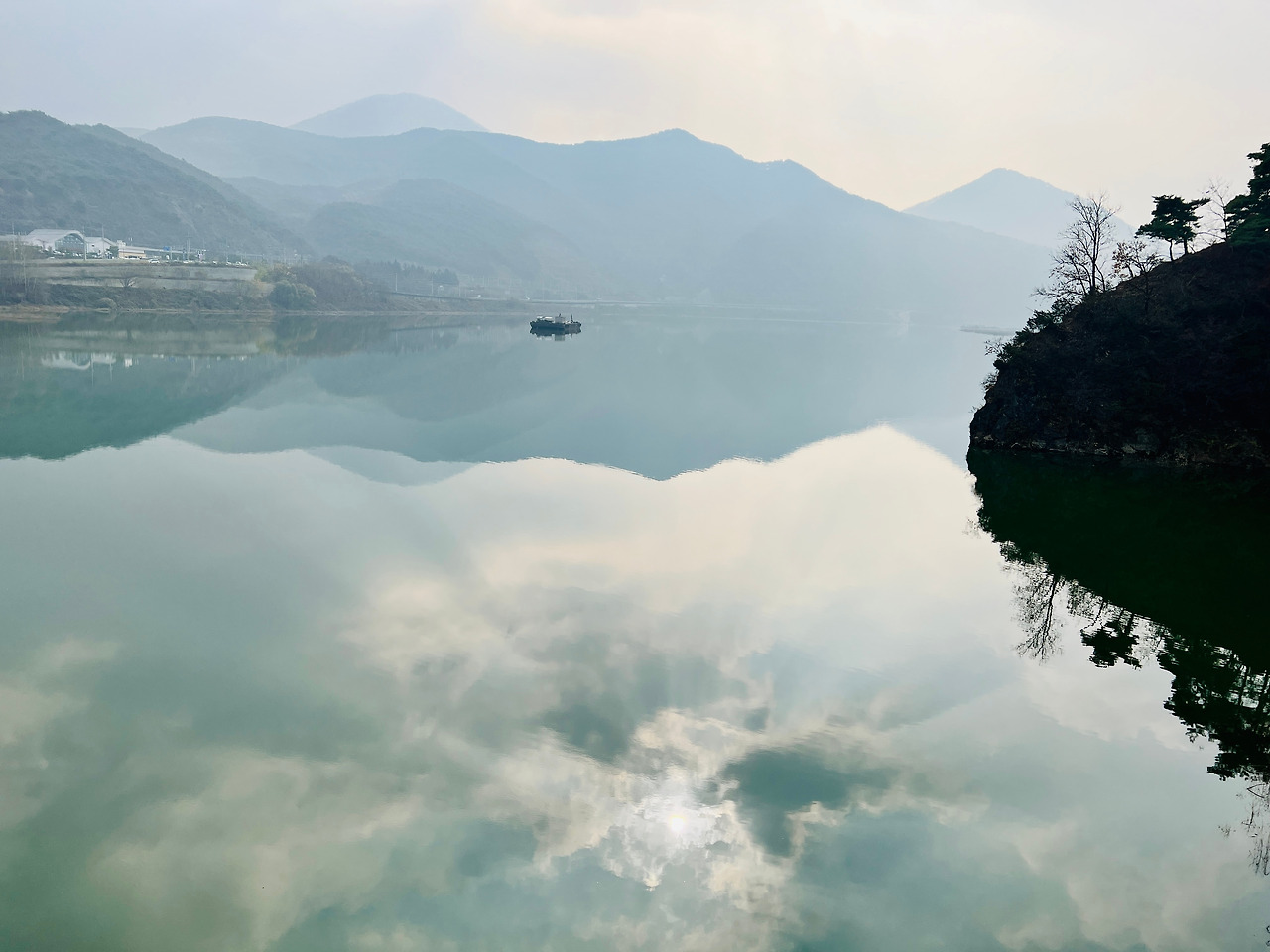 수면 위 물그림자가 부모님 마음처럼 애처로웠다. 자녀가 성장하여 독립하는 것을 기뻐하면서도 눈물짓는 마음 같았다. 소백산이며 절벽이며 하늘의 구름까지 고스란히 비춰주는 마음이, 자녀를 있는 그대로 보듬어주는 무한대의 사랑이었다. 잔잔한 물결에 마음이 흔들리고, 스산한 바람에 마음이 뜨거워졌다. 구름 뒤에 숨어있던 태양이 나타나 강렬한 빛을 내고 있었다.