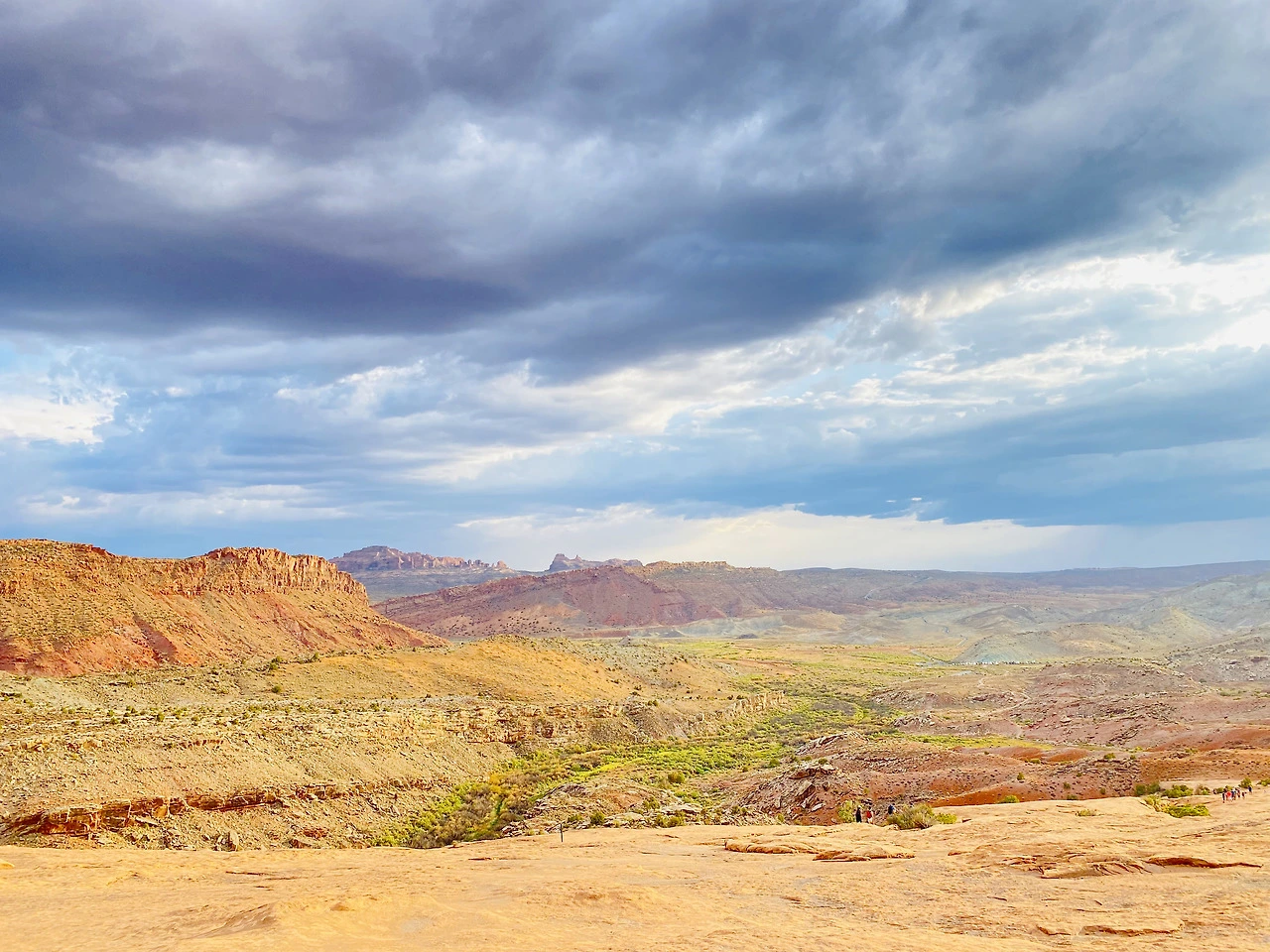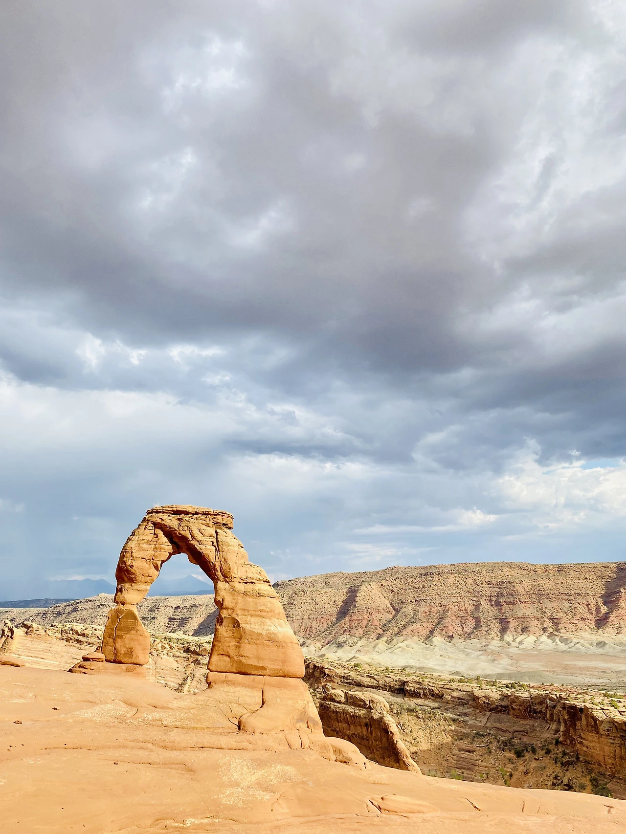 점점 바람이 휘몰아치고 구름이 어둑하다. 이따금씩 떨어지는 빗방울에 젖은 흙냄새가 피어오르고, 아치 주변에는 사람들이 모여있다. 바위에 기대어 쉬는 사람, 아이 얼굴의 땀을 닦아주는 사람, 초코바를 꺼내 먹는 사람, 구도를 잡고 사진을 찍는 사람, 기어가듯 아치로 다가가는 사람, 그리고 흘러가는 오늘을 안고 싶은 우리 가족 세 사람.
