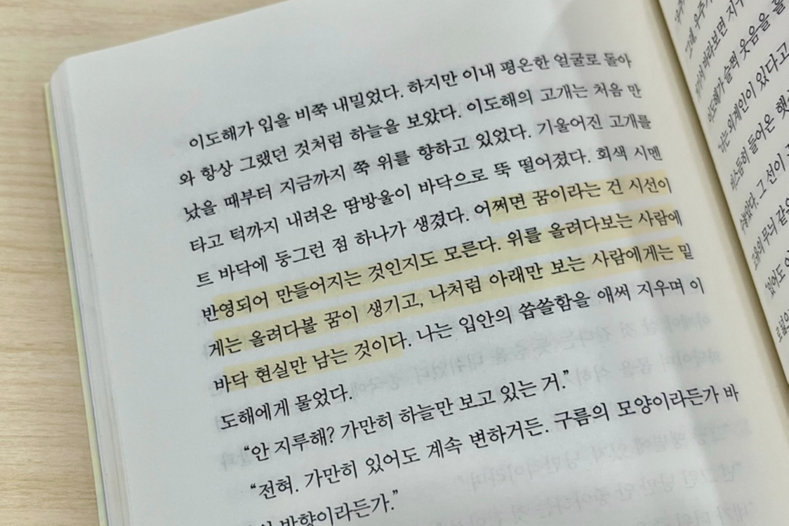 어쩌면 꿈이라는 건 시선이 반영되어 만들어지는 것인지도 모른다. 위를 올려다보는 사람에게는 올려다볼 꿈이 생기고, 나처럼 아래만 보는 사람에게는 밑바닥 현실만 남는 것이다.