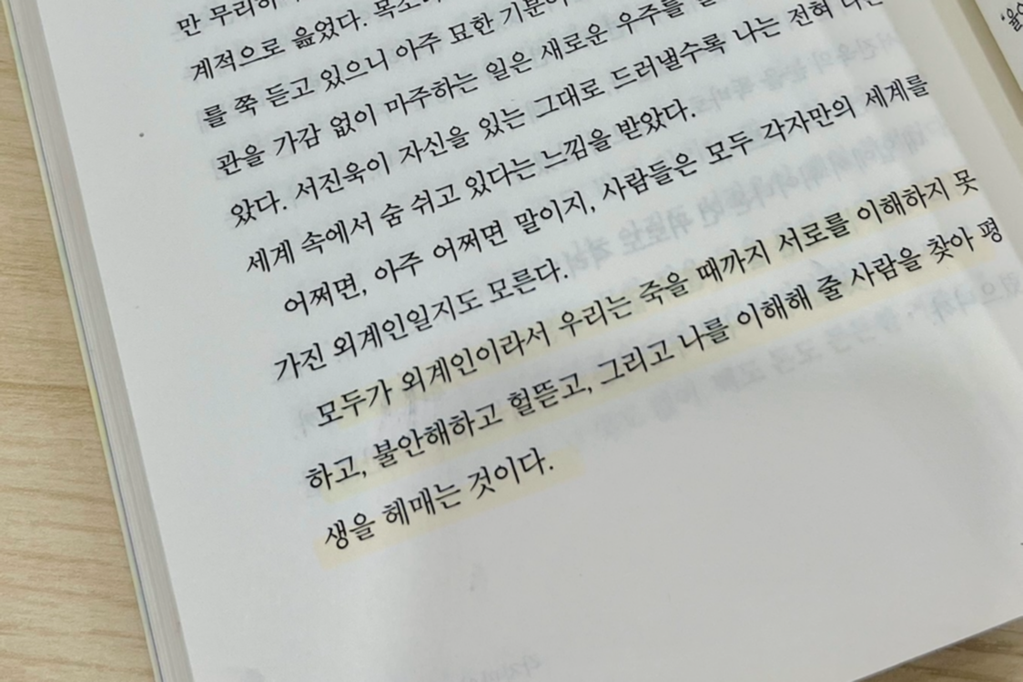 모두가 외계인이라서 우리는 죽을 때까지 서로를 이해하지 못하고, 불안해하고, 헐뜯고, 그리고 나를 이해해 줄 사람을 찾아 평생을 헤매는 것이다.