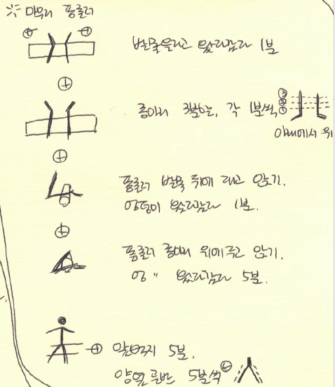 이 때 손바닥이 하늘을 바라볼 수 있게 손등을 바닥으로 툭 내려줍니다.