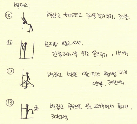 벽 잡고 골반을 원 그려주면서 돌리기 양쪽 30번씩.