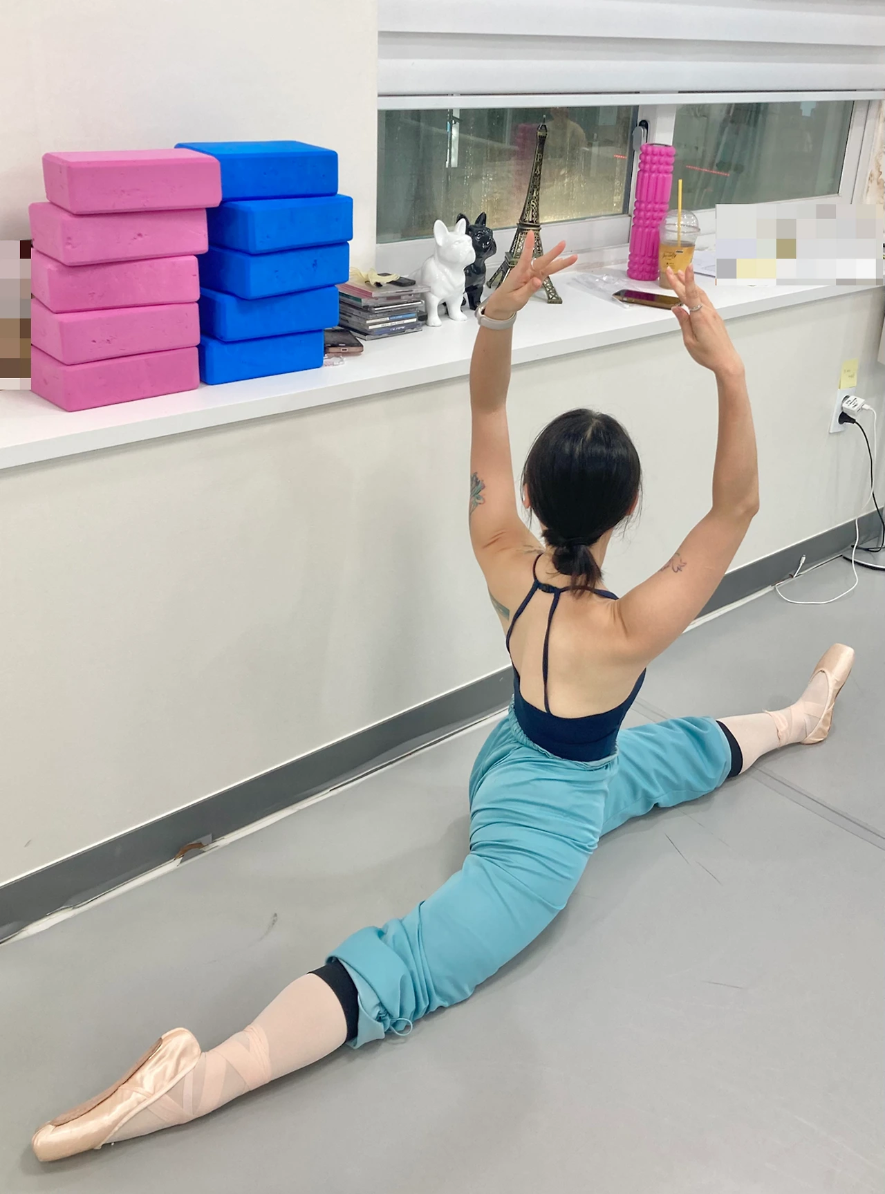 그로부터 3년 후인 지금은 프론트 다리찢기, 사이드 다리찢기 모두 할 수 있게 되었다.