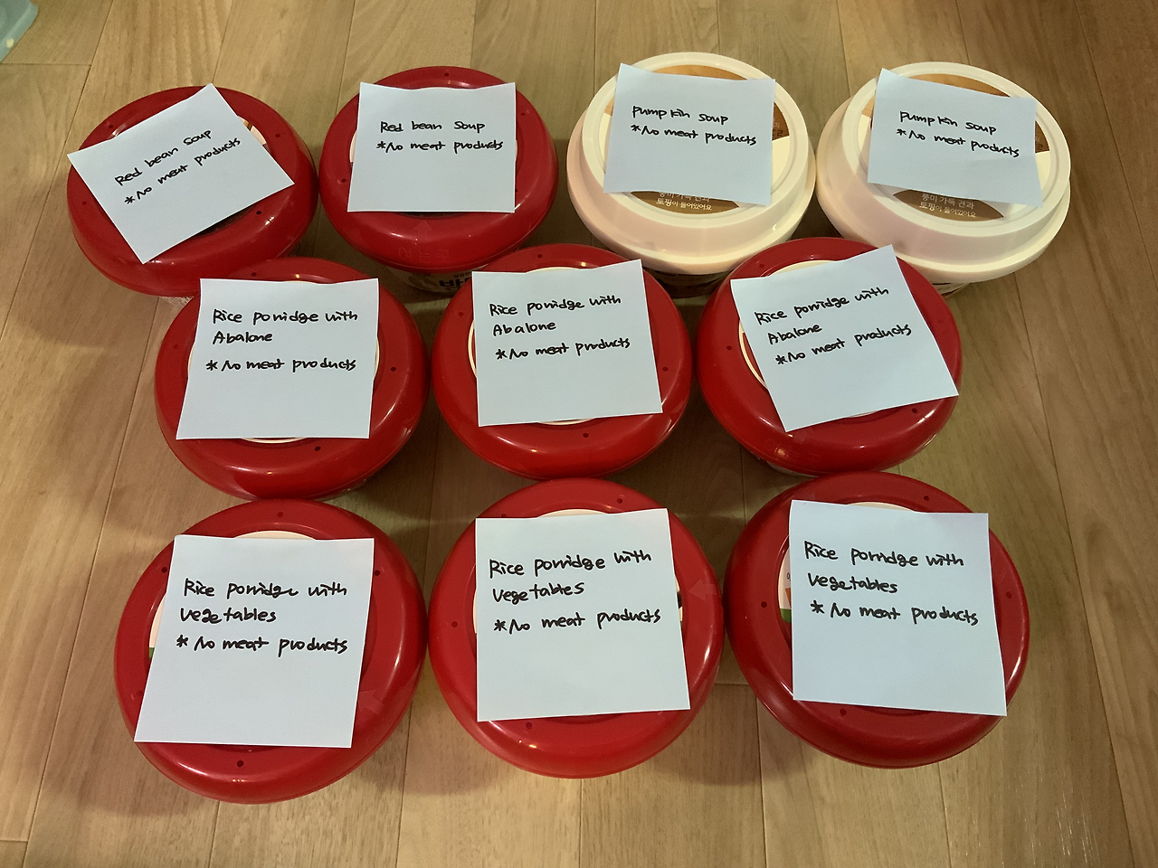 그리고 수술 후 아픈 이모를 위해 죽을 잔뜩 샀다.