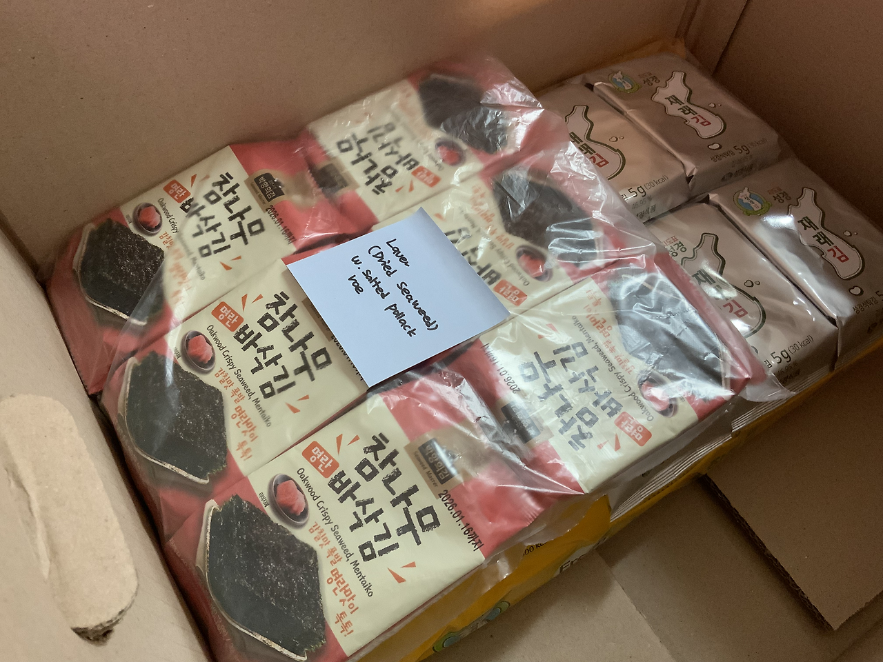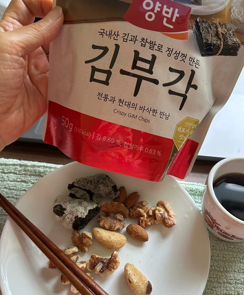최근에 먹어보고 간식처럼 쌓아두고 집어 먹었던 박향희 참나무 명란 바삭김까지