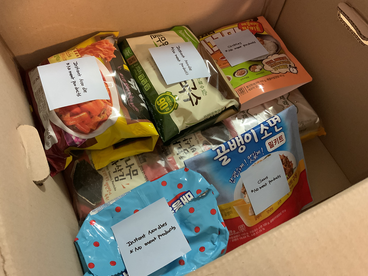당장 인근 대형마트에 가서 큼지막한 박스 가득 한국 음식, 과자 등 선물을 쓸어 담았다.