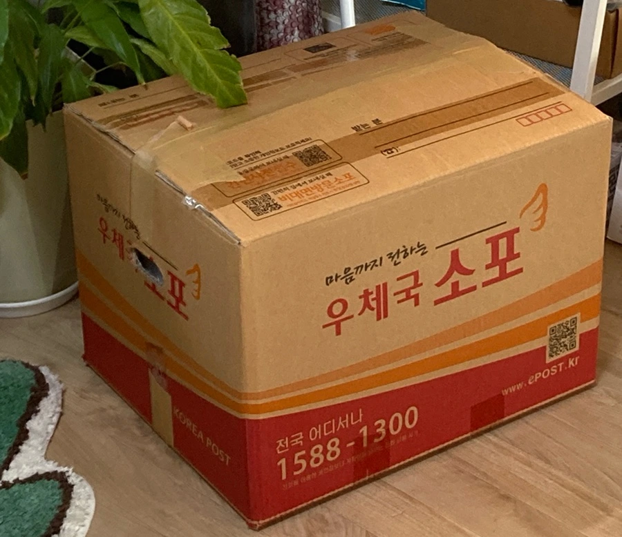 뚱뚱해진 박스를 정성스럽게 싸고, 이제 막 보내기만 하면 됐는데..!