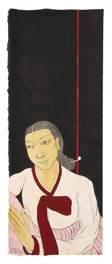 팔십인 그녀는 '민화가 버려진 보물' 같다며, "서민들의 소소한 생활과 감정이 있는 그대로 느껴진다"며 자화상과 접목합니다.