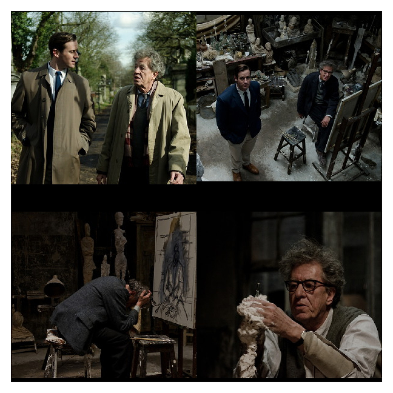 영화는 쟈코메티가 오랜 친구이자 작가인 제임스 로드에게 초상화의 모델이 되어주길 부탁하고, 하루 이틀이면 끝나리라고 했던 작업이 18일 동안 계속되어지는 과정을 제임스 로드 본인이 그린 소설로부터 시작되었다더군요. 당시에도 유명세를 타던 쟈코메티는 파리 몽파르나스의 7평 작은 작업실에서 동생 디에고와 아내 아네트와 함께 기거하고 있습니다. 거기에 쟈코메티가 폭 빠져있는 캐롤라인이라는 창녀가 드나들고.....