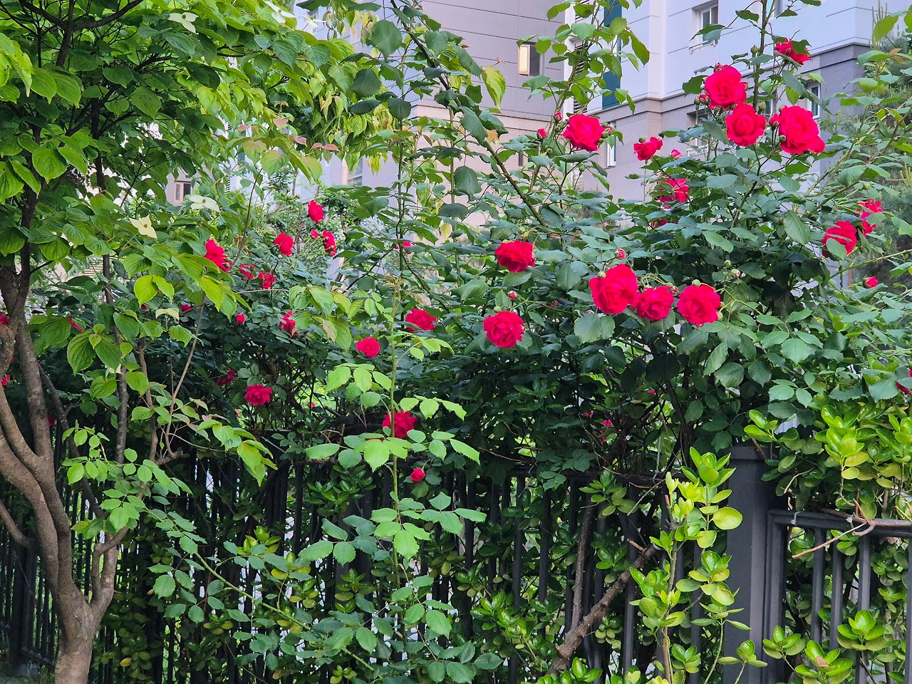 담벼락에 무심히 서 있던 덩굴에서 빨간 전구를 켜듯 장미꽃이 하나씩 피고 있다. 꽃송이가 크지 않아 아직 향이 나지 않지만 동네를 진하게 꾸며주는 장미의 계절, 오월이 익어가고 있다. 만개하면 아기 주먹만 한 꽃송이들이 주렁주렁 달려 가지가 고개를 숙이기도 한다. 봄꽃들이 차례로 피고 떠난 빈자리를 향해 마지막 피날레 공연을 하려는 듯 아낌없이 피어난다.