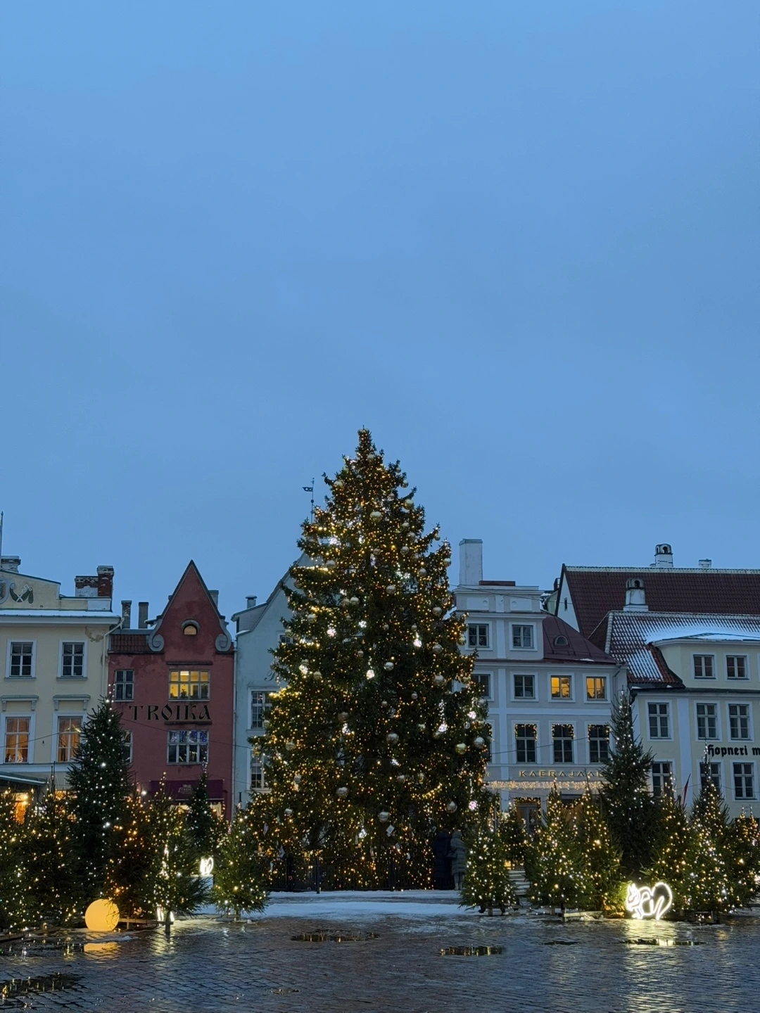 중세 시대의 사람들이 거닐었을 길을 걸으며 닿은 곳은 올드타운 라에코다 시청 광장이었다. 1월이지만 아직 성탄 시기가 끝나지 않아서 대형 크리스마스트리와 다양한 트리 장식들이 우리를 기다리고 있었다. 트리들 사이를 다니며 보이는 수많은 조명은 따뜻한 기운을 보내주고 있었다. 아이들 사진을 찍어 주며 카메라에 비치는 아이들에게 성탄의 축복을 하였다.