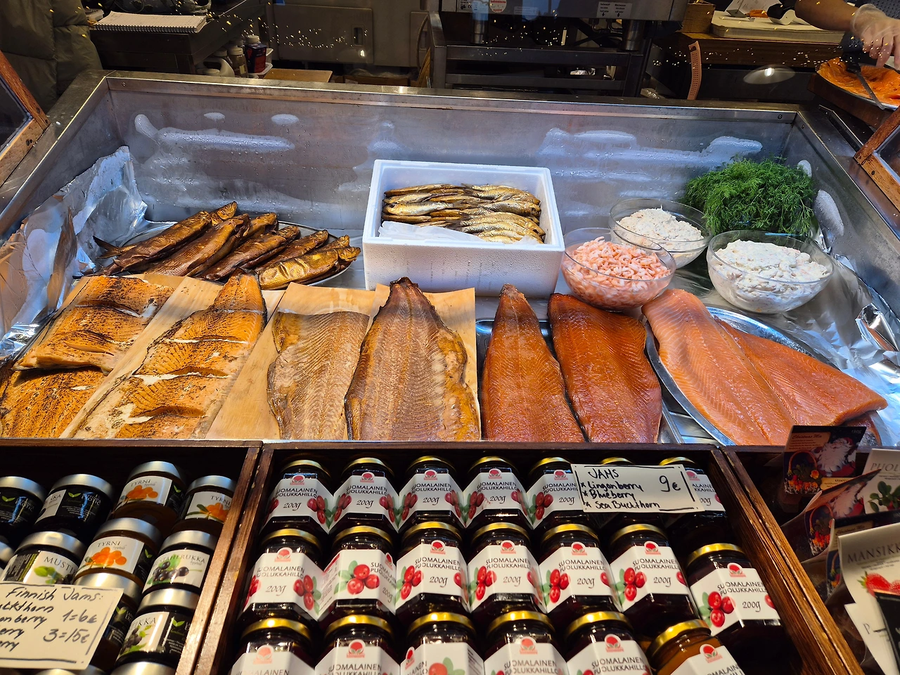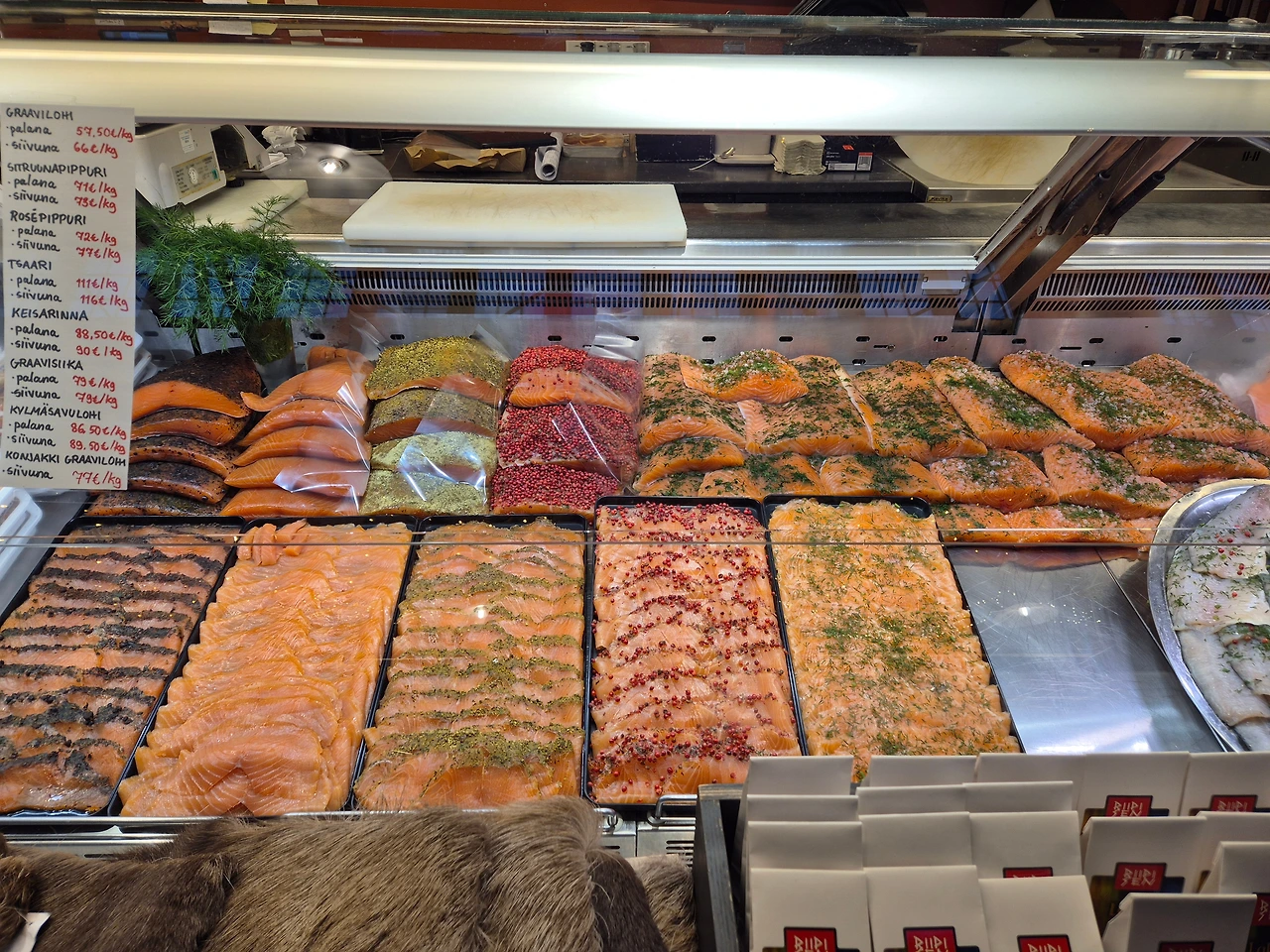 다음은 Old market Halld을 찾았다. 헬싱키 항구 바로 앞에 있는 마켓 가는 길에 수공예품을 파는 노점이 줄지어 있어 볼거리가 많았다. 미처 사지 못한 기념품을 구입하느라 시간 가는 줄 몰랐다. 벽돌색 건물의 헬싱키 올드마켓은 생각보다 컸다. 다양한 맛의 연어, 청어, 꿀, 초콜릿등 생동감이 넘쳤다. 올드마켓 연어수프가 유명하지만 상점만 둘러보았다.