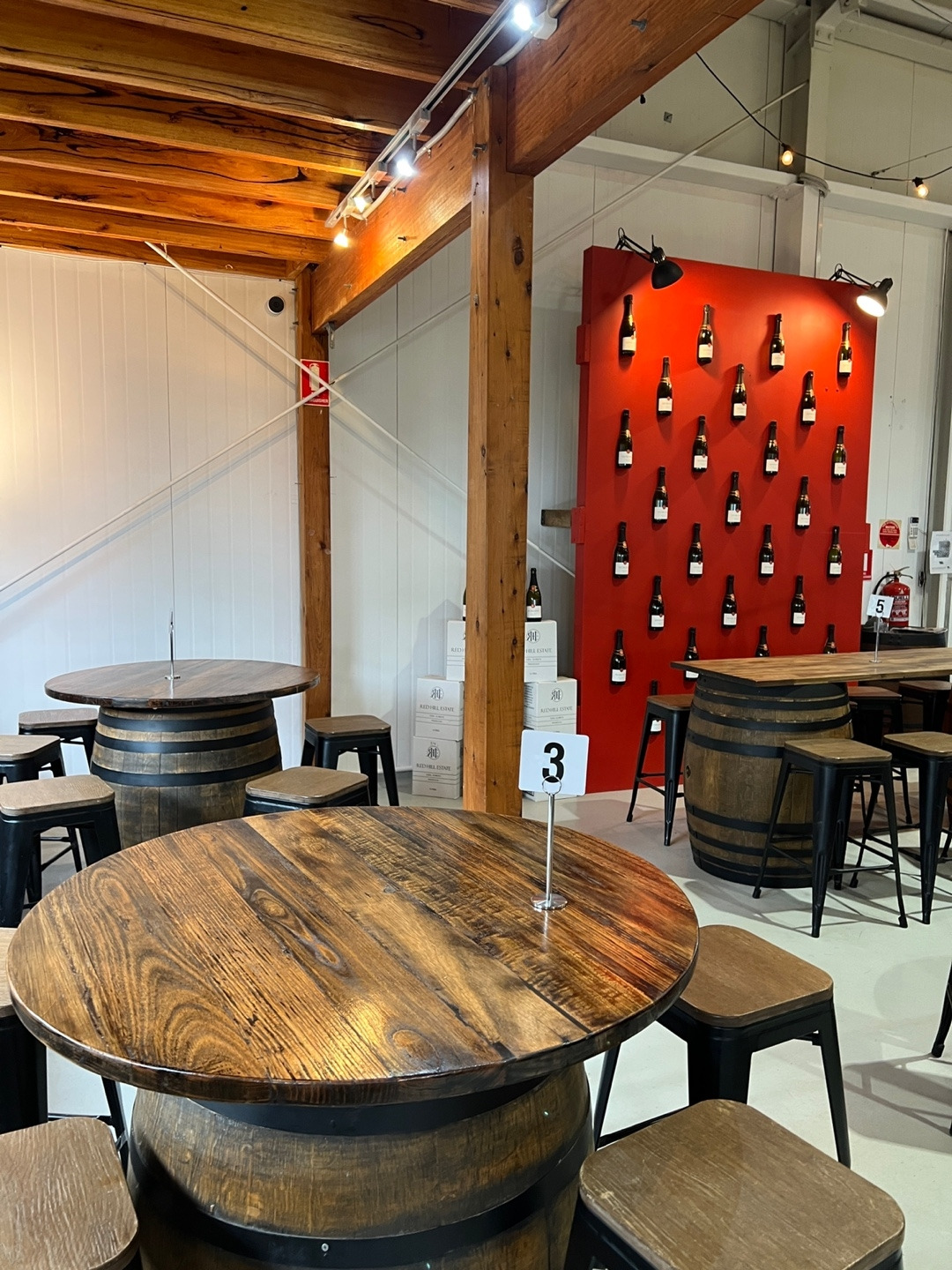 쌓여있는 오크통과 오크통을 활용한 시음 테이블이 멋스러움을 더했습니다.
