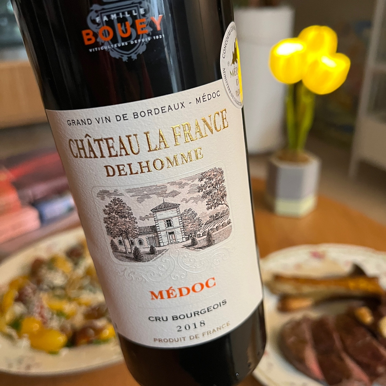 WINE TASTING NOTE / Chateau La France Delhomme Médoc 2018 - 진한 루비철러의 과실향이 가득한 미디엄바디의 와인입니다. 바닐라, 블랙체리, 플럼, 다크초콜릿이 느껴지는 와인으로 스테이크와 잘어울리는 테이블와인입니다.