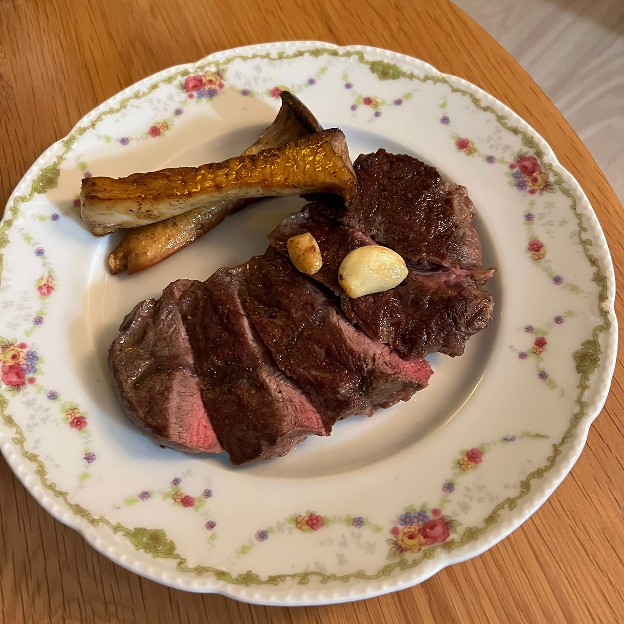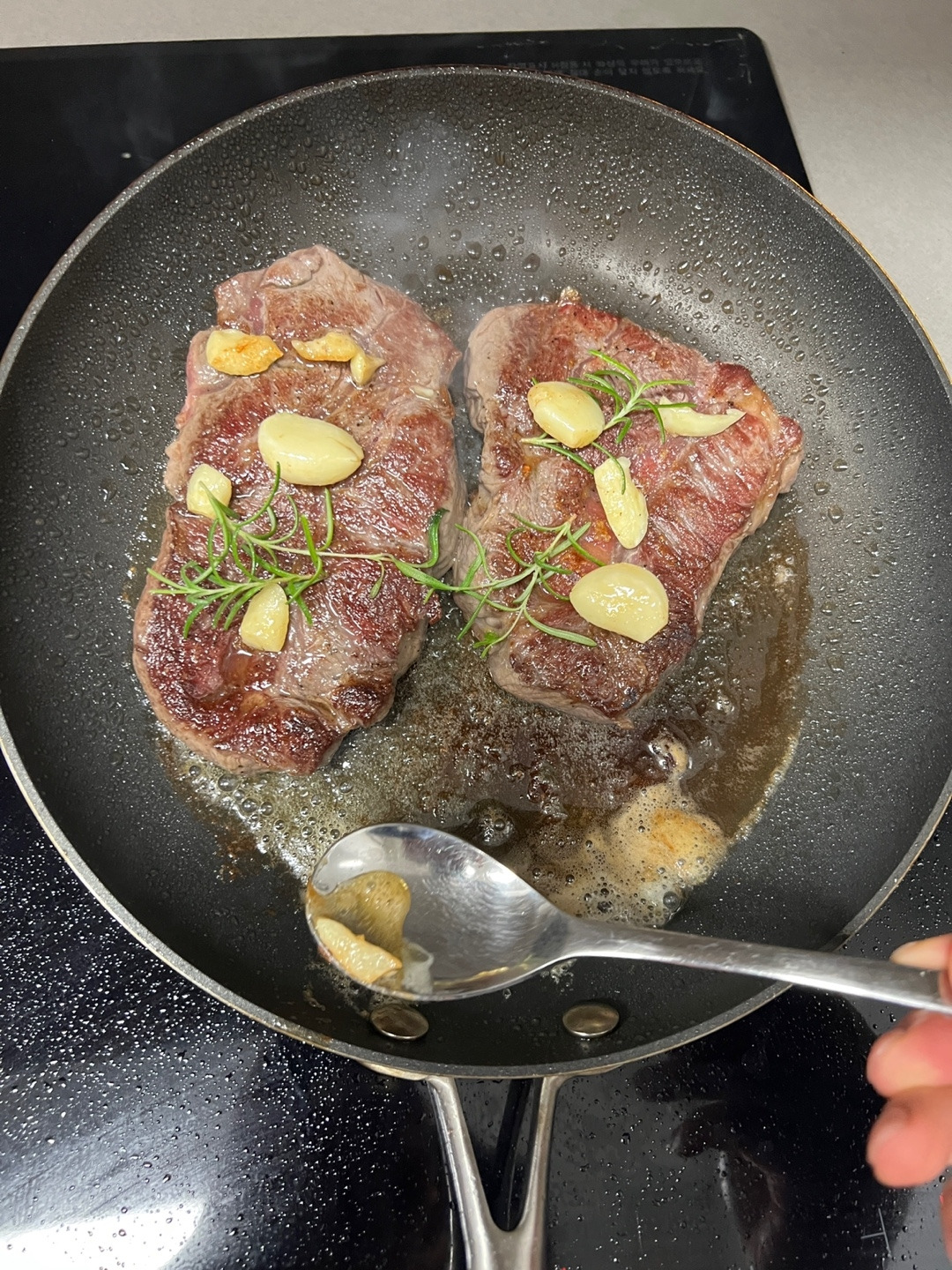 탄수화물로만 저녁을 먹기엔 아쉬워 스테이크도 빠르게 구워내 행복한 토요일 저녁을 만들어 보았습니다.