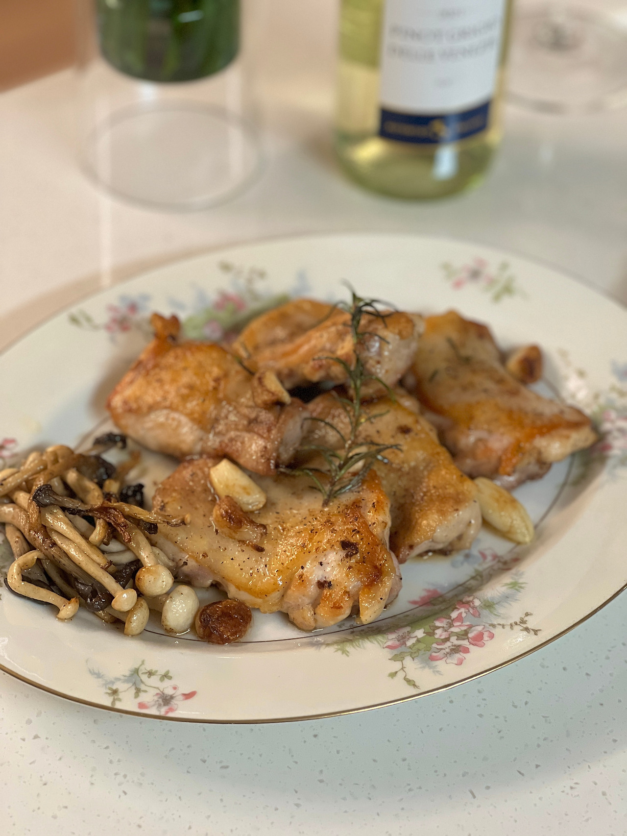 겉은 바삭하게 속은 촉촉하게 잘 구워진 닭다리살은 화이트와인과 궁합이 아주 좋았습니다.