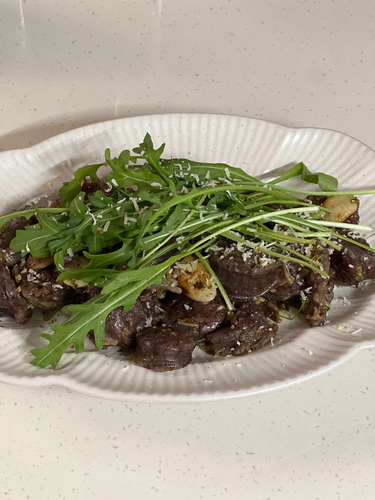 크림소스를 곁들인 스피니치 치킨과 사과와 레몬, 관자의 환상적인 조합의 관자샐러드와 루꼴라와 함께 먹는 바질순대까지.