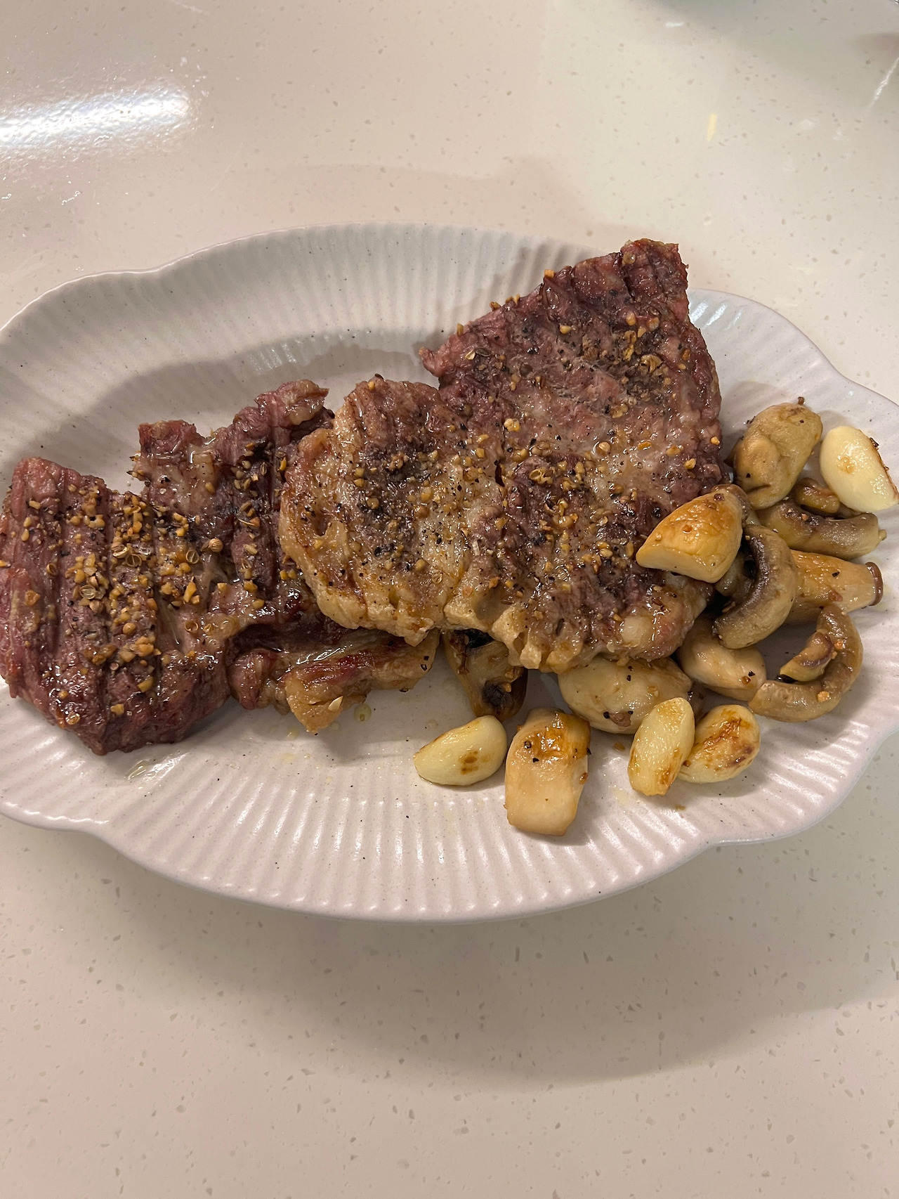 겉바속촉 돼지목살과 통마늘은 너무나 맛있어요 :)